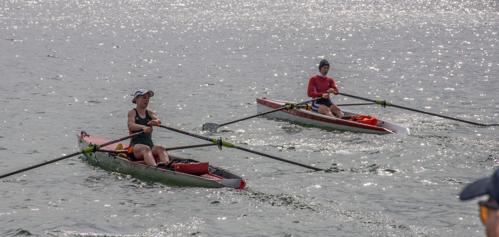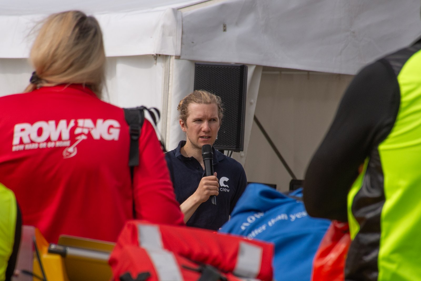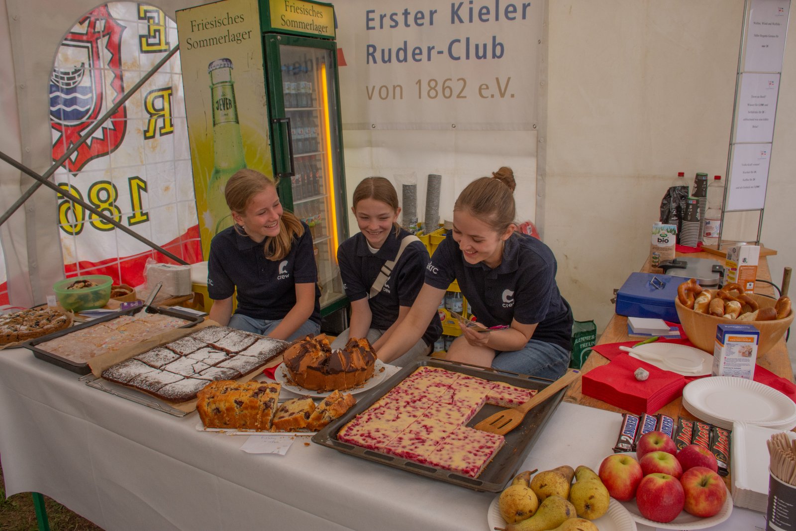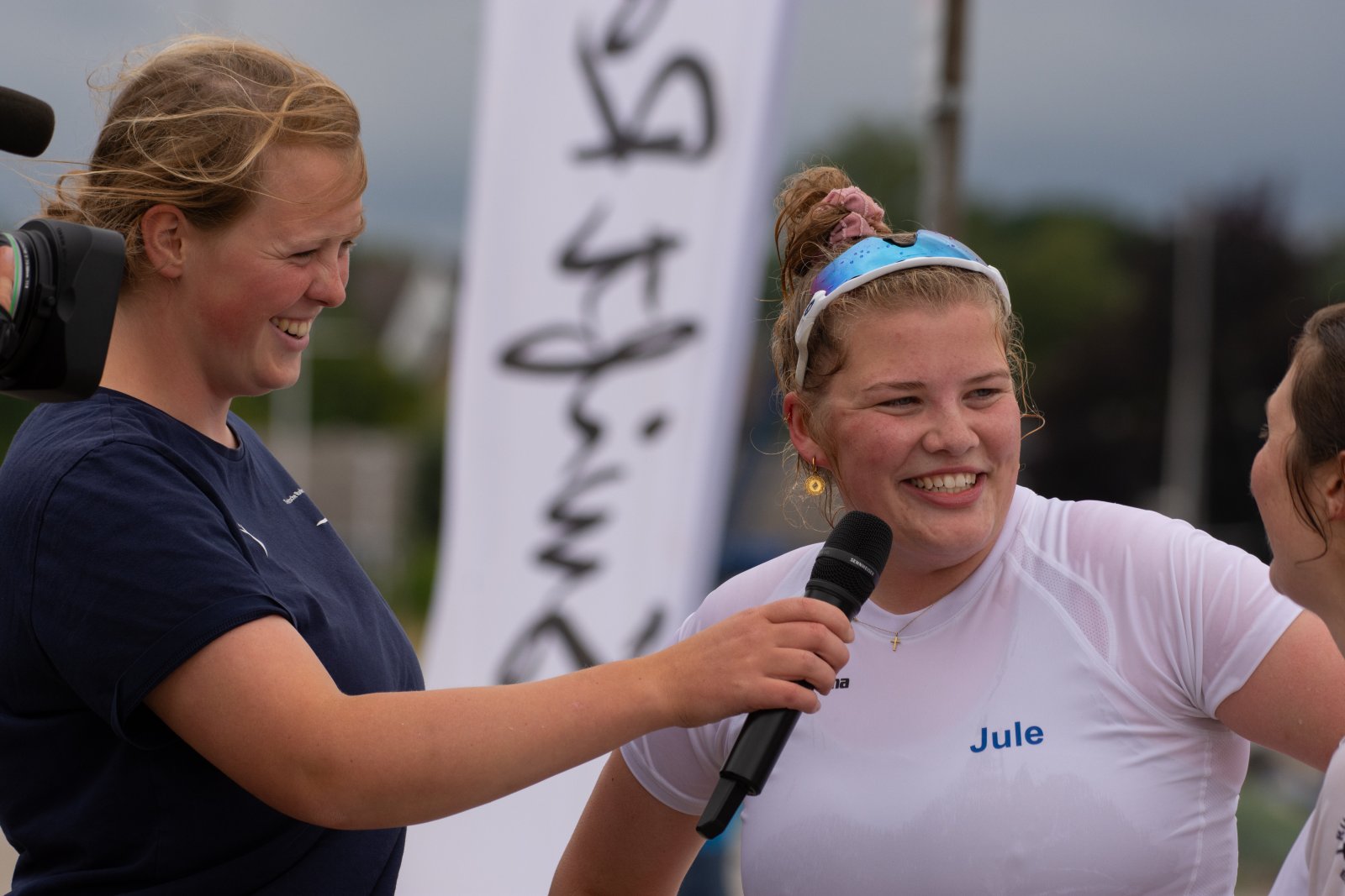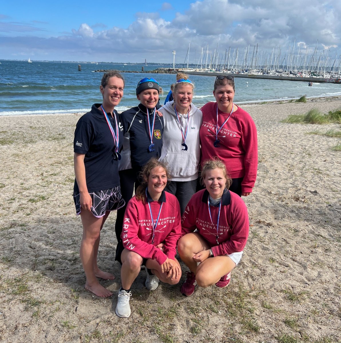 Die ungewöhnlichen Aktivitäten in der Strander Bucht bleiben bei den Sonntagsspaziergängern auf der Promenade nicht unbemerkt. Immer wieder beobachten Neugierige das Treiben und lassen sich das Geschehen erklären. Doch wir wollen ja größeres Publikum – und dies erreicht man heute natürlich über das Internet. Ein Livestream, professionell aufbereitet mit verschiedenen Kamerapositionen und einer Drohne liefern packende Livebilder vom Geschehen auf der Förde in das Teilnehmerzelt sowie in die ganze Welt. Doch ein Livestream ohne Worte ist wie Sahne ohne Torte. Also kommentiert das Kieler Ruderurgestein Kim Dibbern wieder das Geschehen, dieses Mal begleitet von Elisa Trog und Anna Fischbach, die mit ihrer langjährigen, internationalen Coastalwettkampferfahrung die Analysen fundiert ergänzen. Ihre Liveinterviews mit den Aktiven bescheren uns darüber hinaus weitere Stimmungsbilder von der Regattabahn.