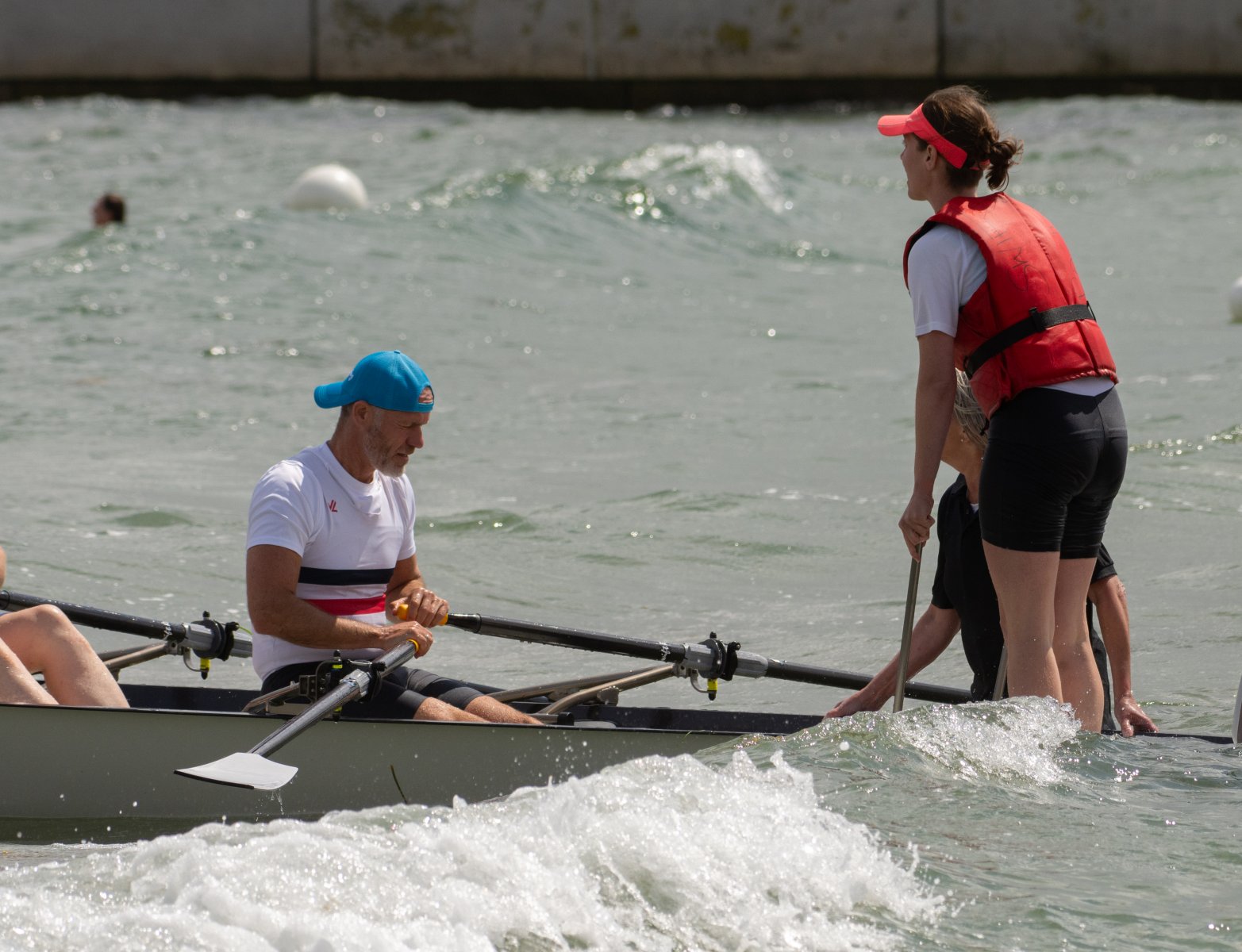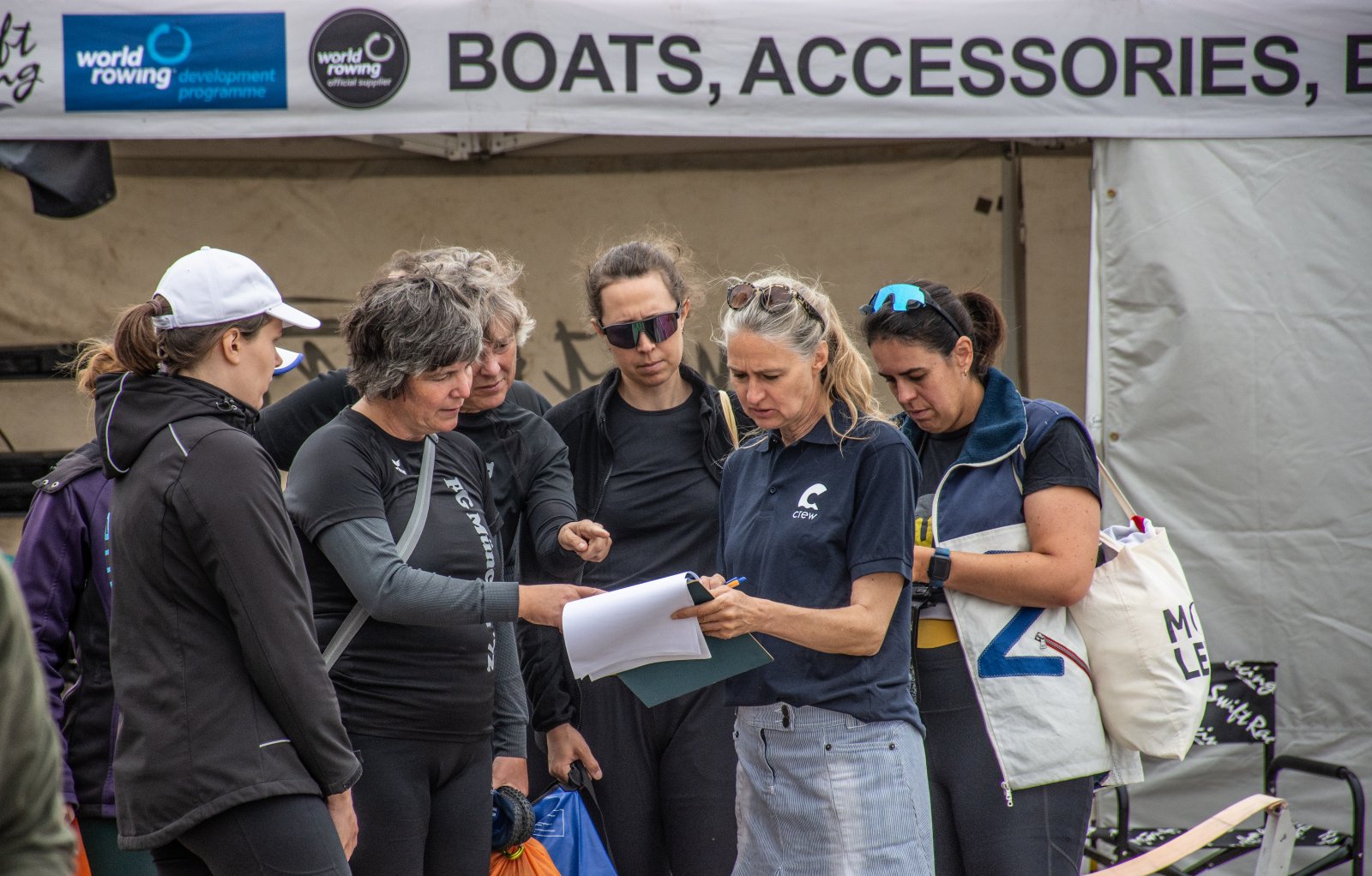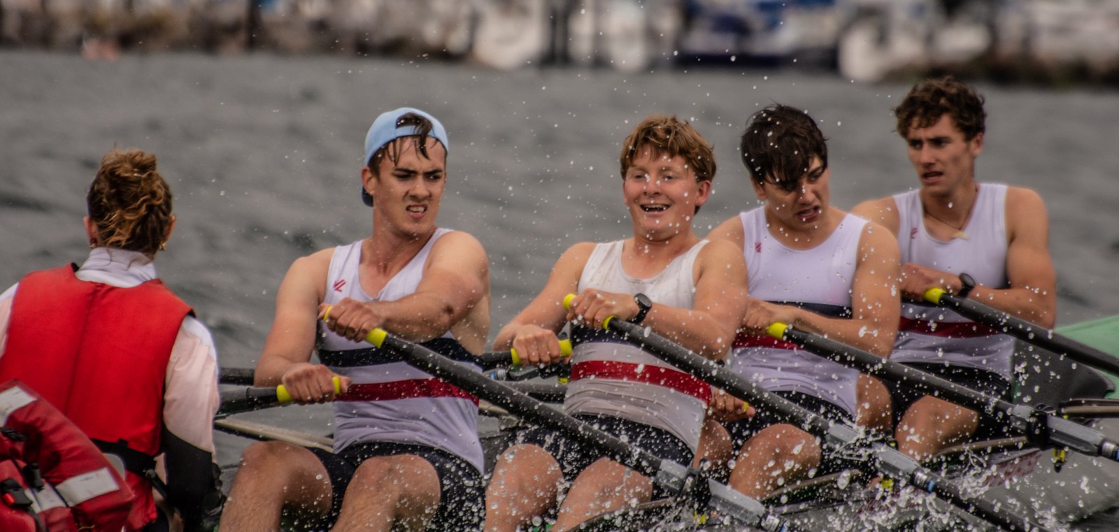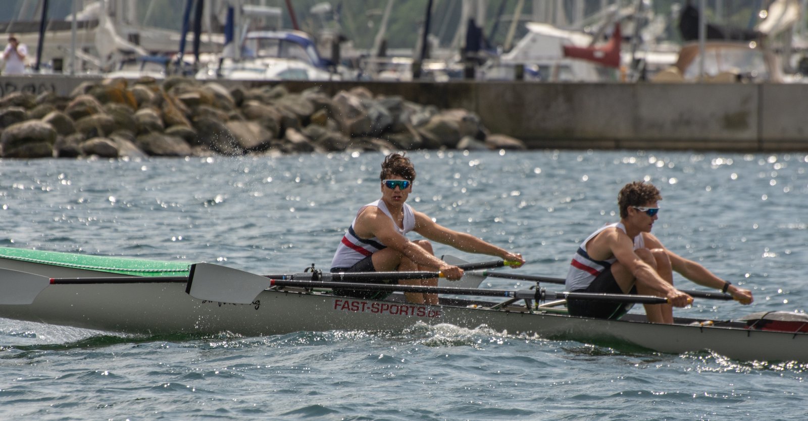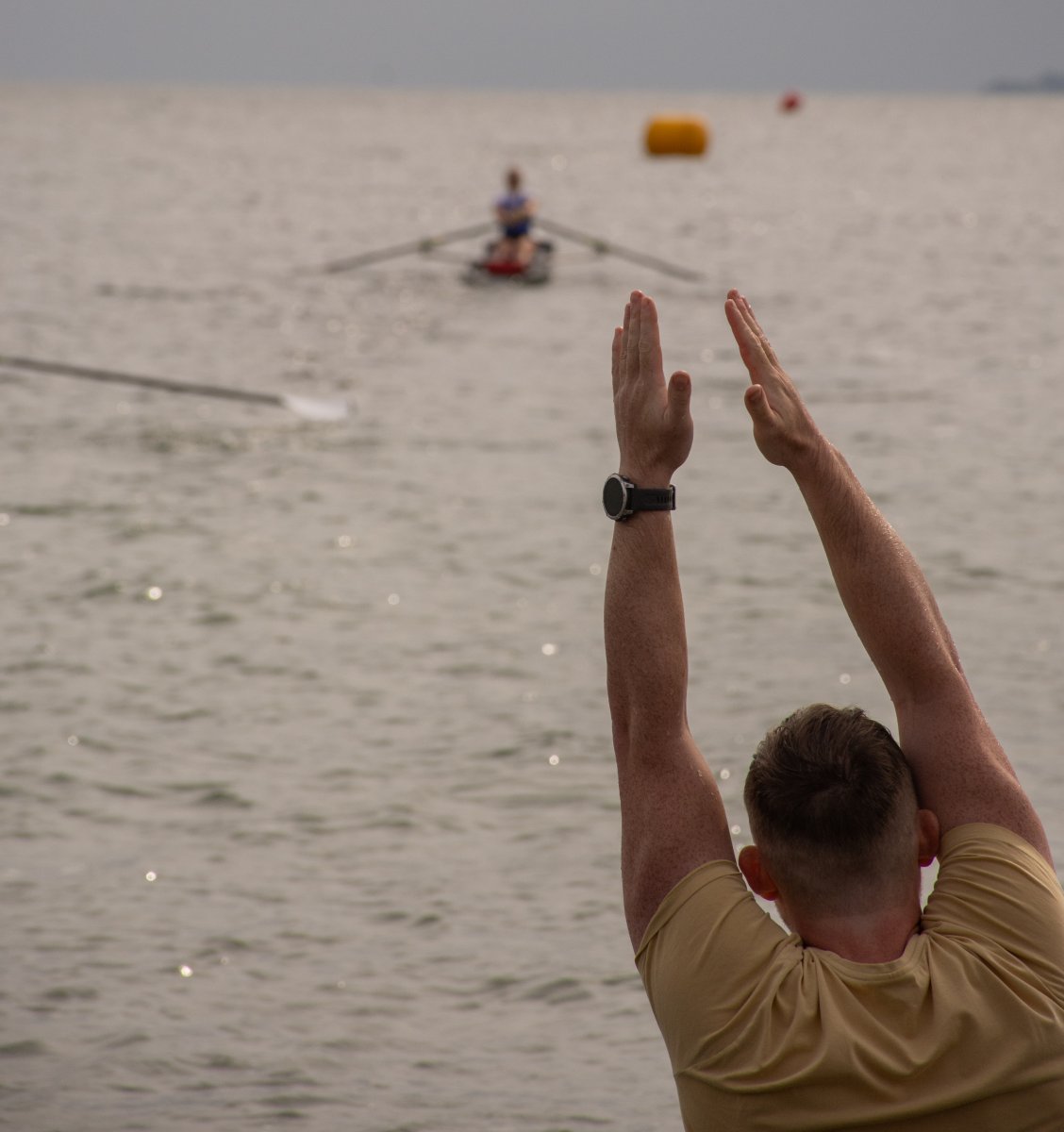 Die ungewöhnlichen Aktivitäten in der Strander Bucht bleiben bei den Sonntagsspaziergängern auf der Promenade nicht unbemerkt. Immer wieder beobachten Neugierige das Treiben und lassen sich das Geschehen erklären. Doch wir wollen ja größeres Publikum – und dies erreicht man heute natürlich über das Internet. Ein Livestream, professionell aufbereitet mit verschiedenen Kamerapositionen und einer Drohne liefern packende Livebilder vom Geschehen auf der Förde in das Teilnehmerzelt sowie in die ganze Welt. Doch ein Livestream ohne Worte ist wie Sahne ohne Torte. Also kommentiert das Kieler Ruderurgestein Kim Dibbern wieder das Geschehen, dieses Mal begleitet von Elisa Trog und Anna Fischbach, die mit ihrer langjährigen, internationalen Coastalwettkampferfahrung die Analysen fundiert ergänzen. Ihre Liveinterviews mit den Aktiven bescheren uns darüber hinaus weitere Stimmungsbilder von der Regattabahn.