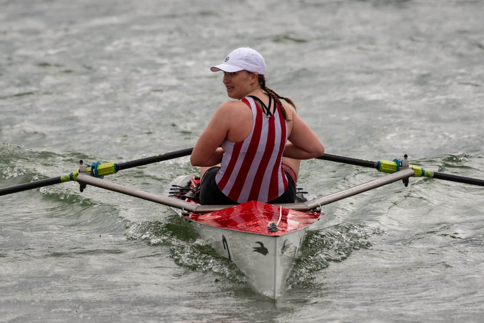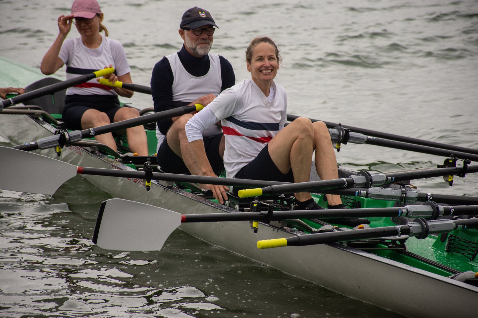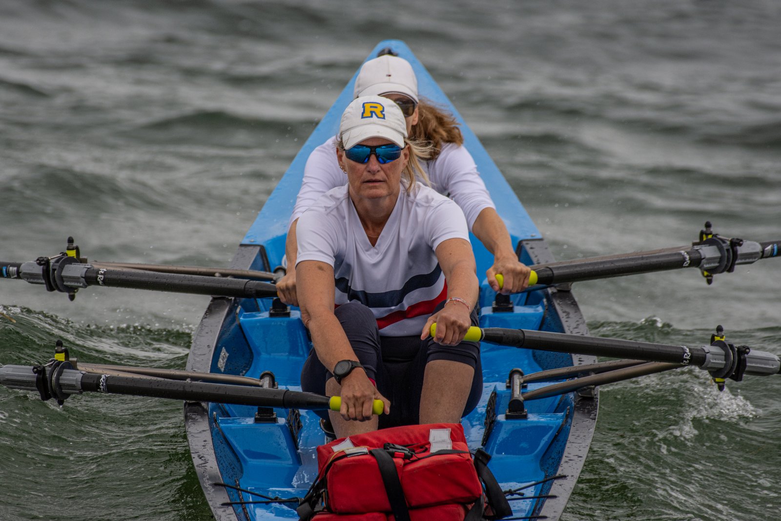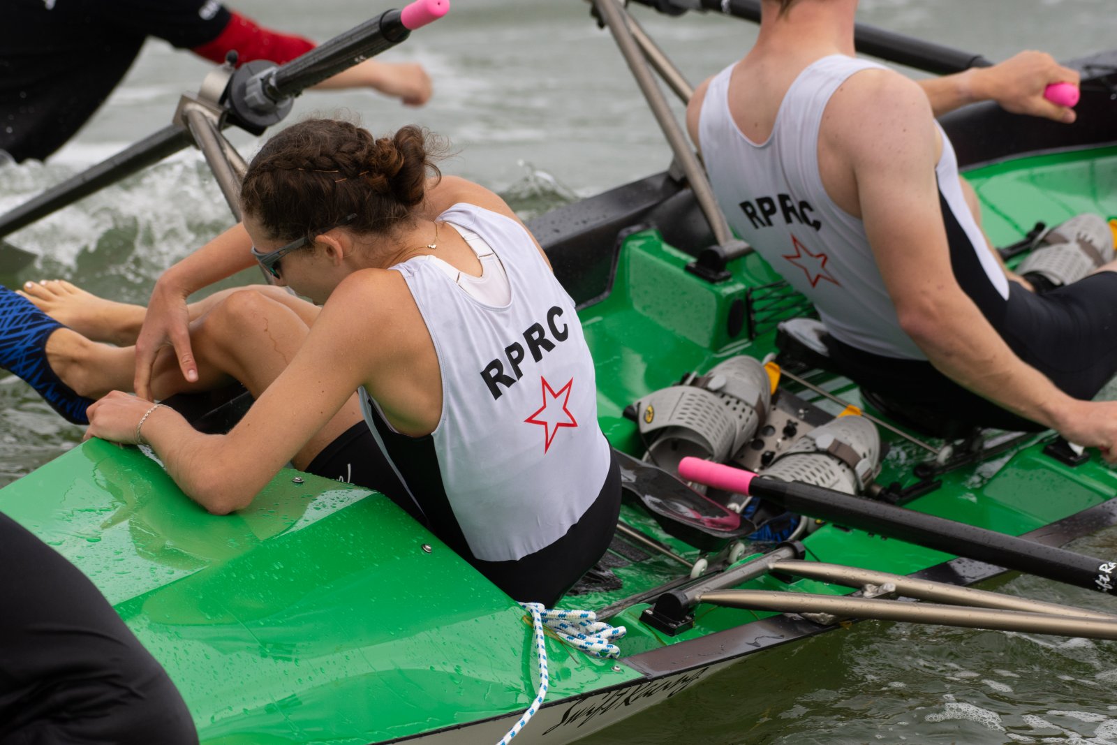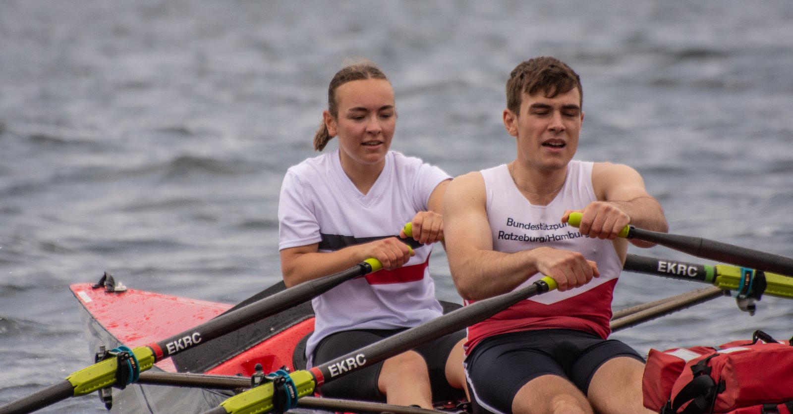 Action oder Abbruch? Diese Frage schwebt am Sonntag über der 4. Kieler Coastal-Regatta, als im Laufe des Tages die Bedingungen von freundlich über zunehmend coastalfreundlich hin zu ungemütlich zu kippen drohen. Ein frischer Ostwind beschert uns Brandung direkt am Strand, welche den Job der Bootshandler am Start zunehmend beschwerlicher werden lassen. Um einen kompletten Abbruch zu umgehen, verkündet die Regattaleitung zum Nachmittag einige Änderungen im Austragungsmodus: Auf den Beachstart wird verzichtet, die Vierrennen werden jeweils auf Zweierfelder gestreckt um das Risiko von Kollisionen zu vermeiden und die Einerstaffeln werden im Vierer ausgefahren – die häufigen Wechsel im Einer bergen zu große Risiken.