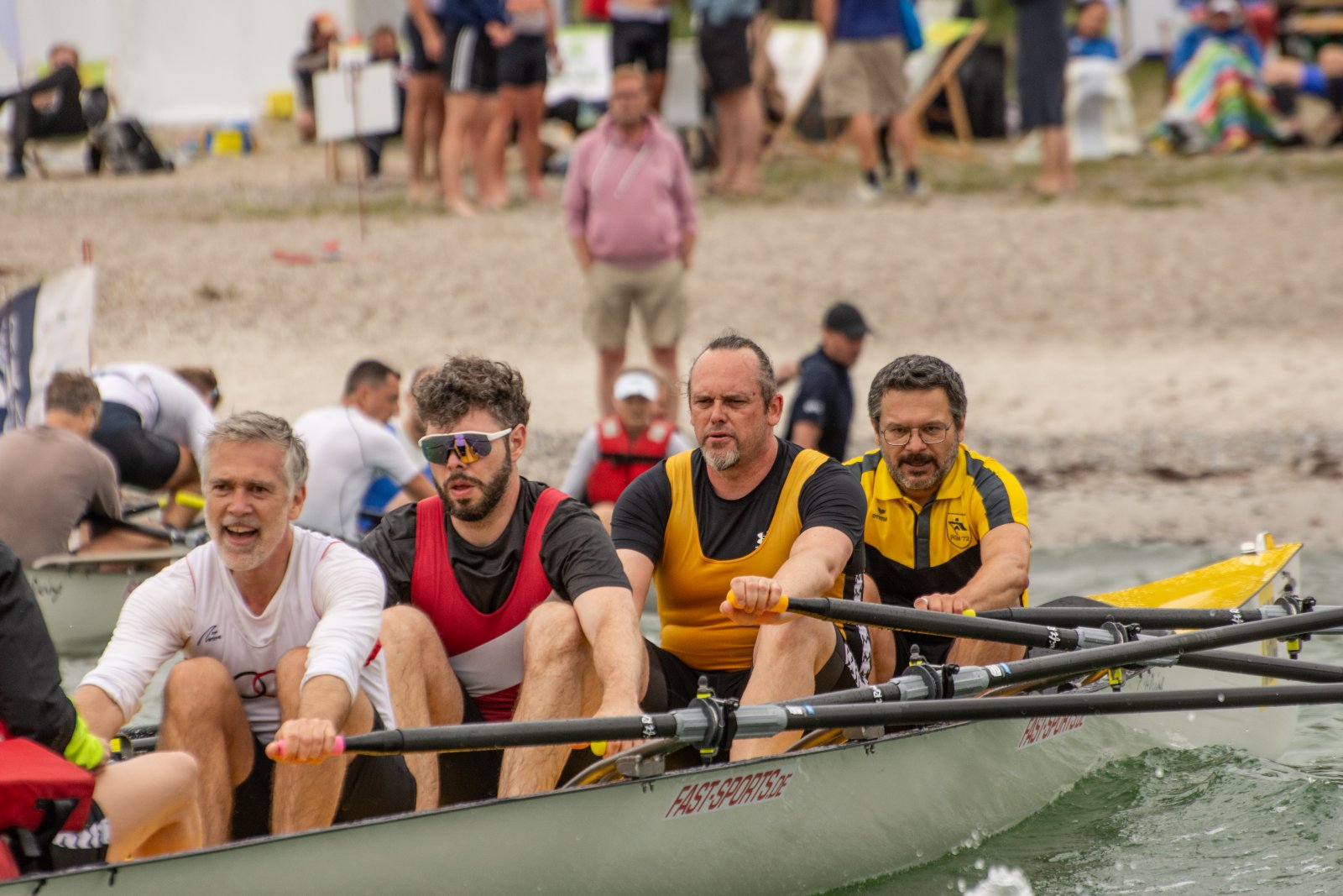 Diese Änderungen tun der Begeisterung der gut 130 Teilnehmer aus ganz Deutschland und Skandinavien keinen Abbruch. Neulinge wie alte Coastalhasen sind am Start und alle steigen nach ihren Rennen mit einem Lächeln im Gesicht aus ihren Booten. In 25 Rennen mit bis zu sechs besetzten Bahnen gehen die Teilnehmer an den Start und liefern sich packende Kämpfe beim Start am Strand, an den Wendebojen sowie beim Verlassen der Boote zum Sprint auf den entscheidenden Zielbuzzer.