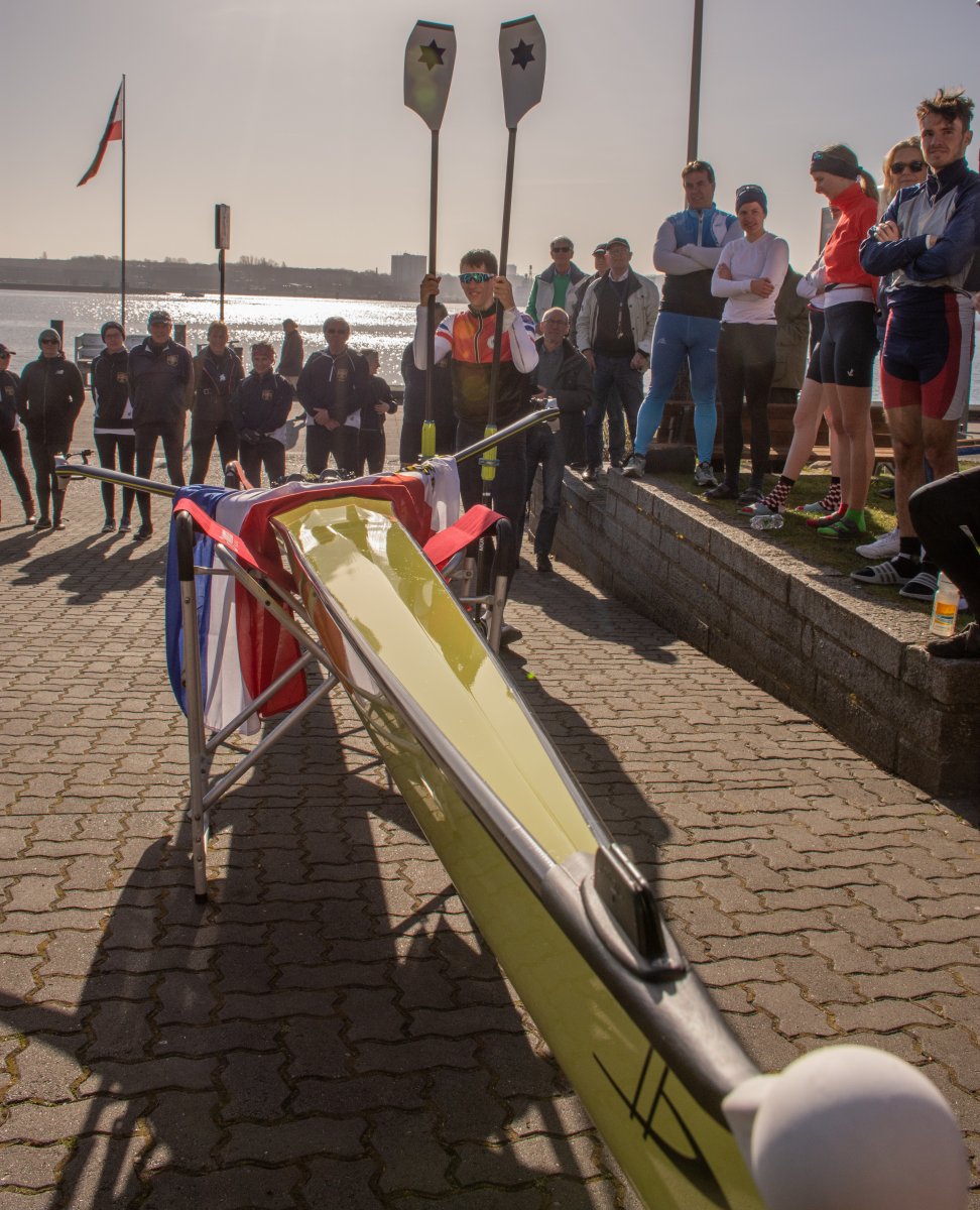 Doch bevor wir unsere Boote zu Wasser lassen, stehen noch Bootstaufen an: Ein neuer Renneiner steht bereit, zusammen mit Oskar in dieser Saison zu neuen Siegen aufzubrechen. Getauft wird er auf den Namen »Dynamic«. Nomen est Omen, dynamisch wird Oskar mit diesem Bootskörper unter seinem Hintern die Konkurrenz hinter sich lassen!