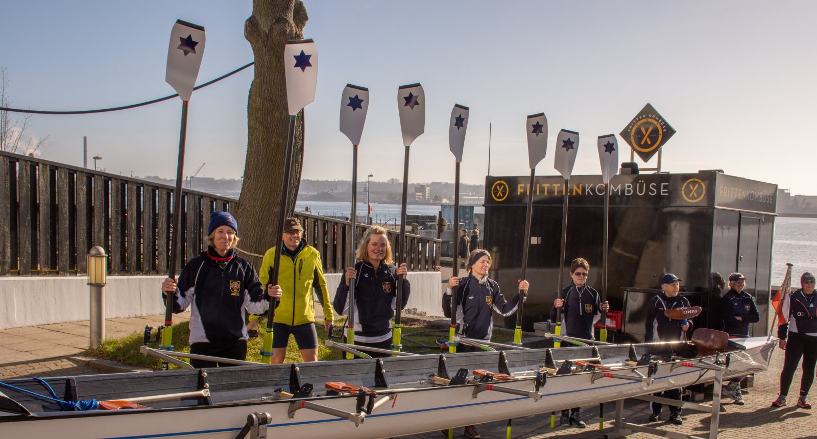 Zurück in die Hörn: Begrüßung mit kurzer Ansprache, »Hipp hipp hurrah!« und los geht der Run zurück in die Bootshäuser.