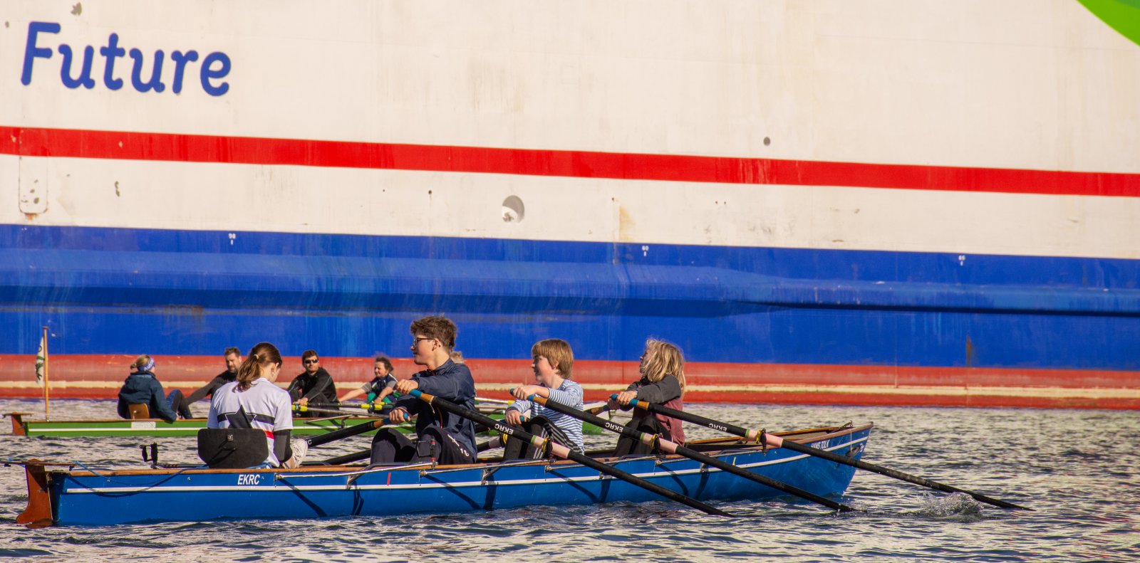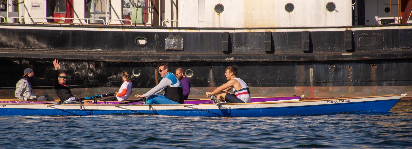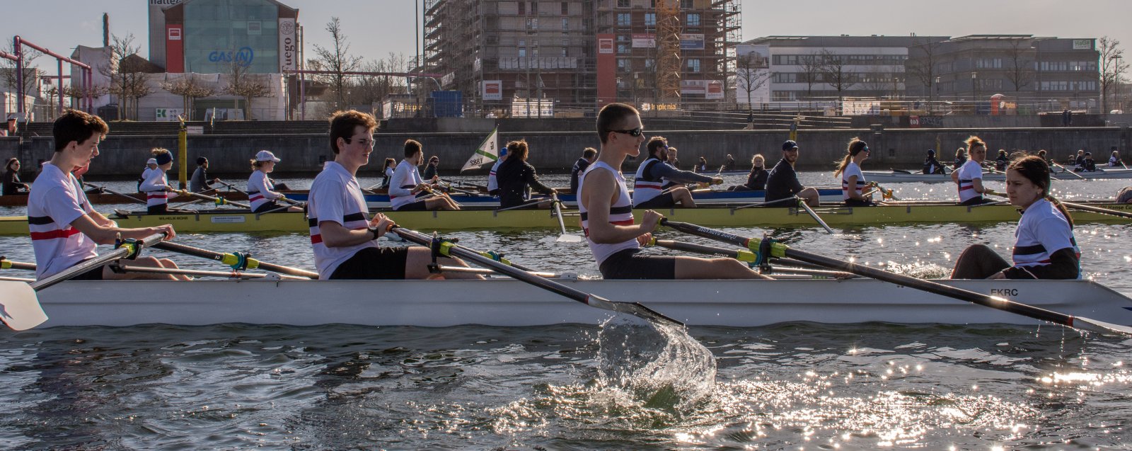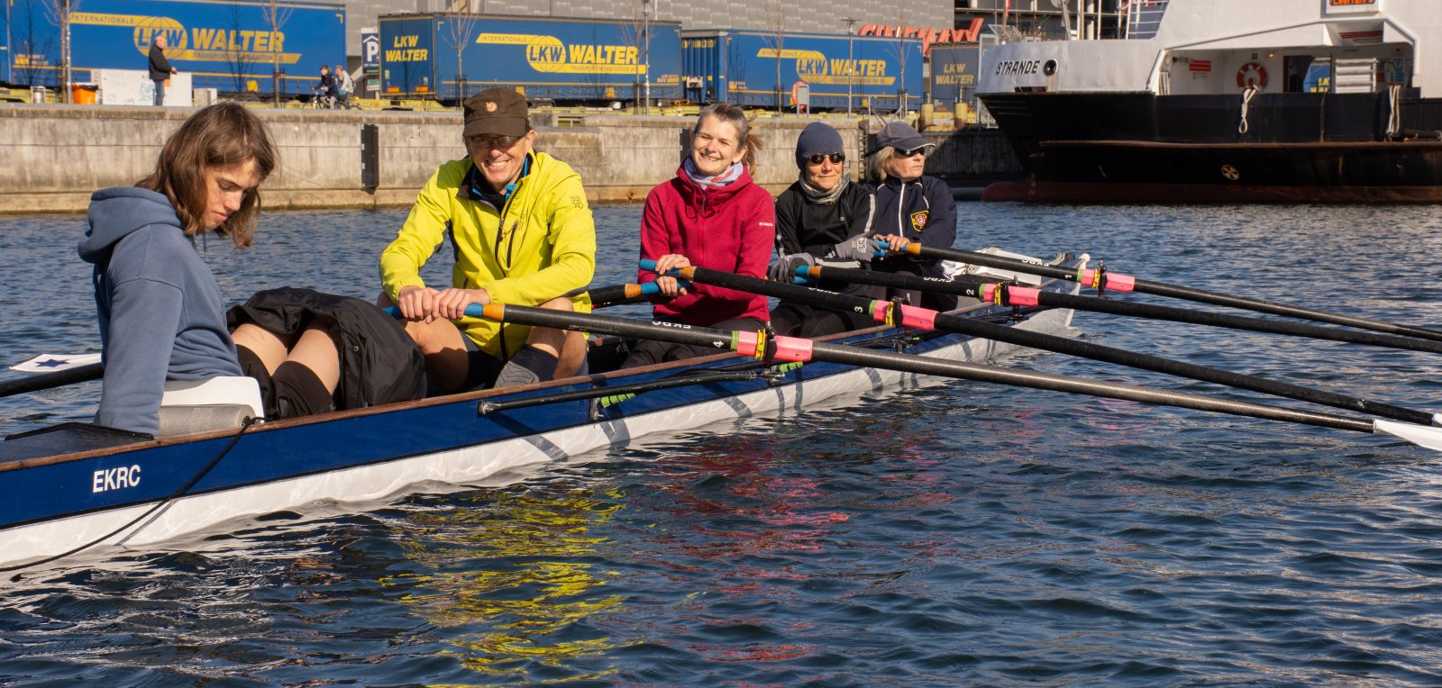 …und so ist zum diesjährigen Anrudern einmal wieder Hochbetrieb in der Hörn! Hochbetrieb auf allen Stegen, 35-40 Boote aller Rudervereine strömen Richtung Innenförde, um dort die neue Saison zu begrüßen – endlich einmal wieder wie in alten Zeiten! Sonniges, mildes Frühlingswetter tut das seine und so herrscht entspannte, freudige Stimmung in allen Booten.