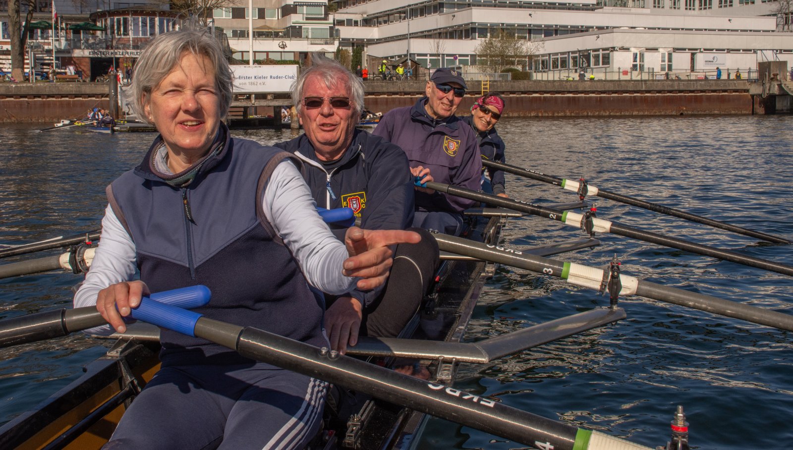 Ruderer und Boote geduscht, nun geht es ab auf die Terrasse. Dort sitzen wir bei einem kleinen Imbiss zusammen und genießen die Sonnenstrahlen. Die neue Saison kann beginnen…