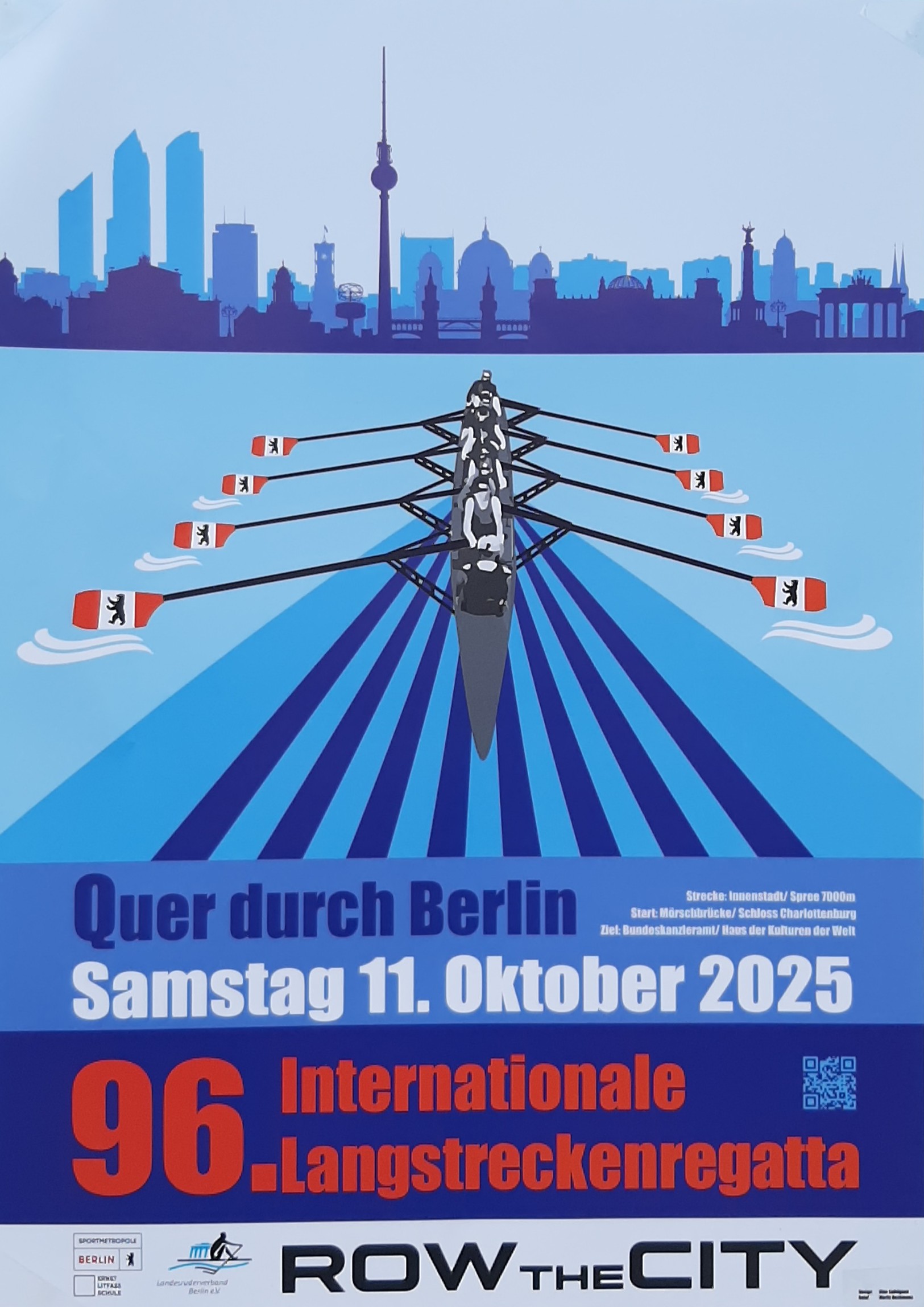 Auch dieses Jahr nehmen wir mit unserem Riemen-Gig-Achter an der Langstrecke Quer durch Berlin teil. Immer ein schönes Ereignis für mich, da ich in West-Berlin aufgewachsen bin und dort auch mit dem Rudern angefangen habe.