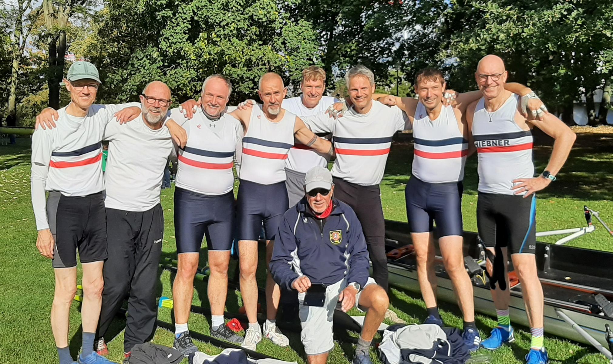 Unsere Teilnahme war bis kurz vorher recht ungewiss, da wir zwar rechtzeitig gemeldet hatten und alle gesund und fit waren, aber im Meldeergebnis keine Gegner hatten. Wir diskutierten schon, auf den Doppelachter umzumelden. Es stellte sich aber raus, dass der Ruderklub am Wannsee auch einen Achter gemeldet hatte, aber die Meldung irgendwie nicht erfasst wurde. Der RaW hat das dann mit dem Veranstalter geklärt und uns informiert. Also konnten Ingmar Schulz, Matthias Böhm, Thomas Blicke, Frank Kleinfeld, Alfred Eberhardt, Stephan Petschallies, Thorsten Hiebner und ich (Jörg Krenz) gesteuert von Claus Riecken starten.