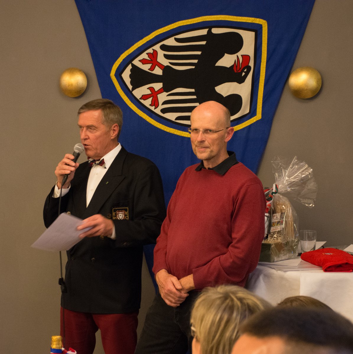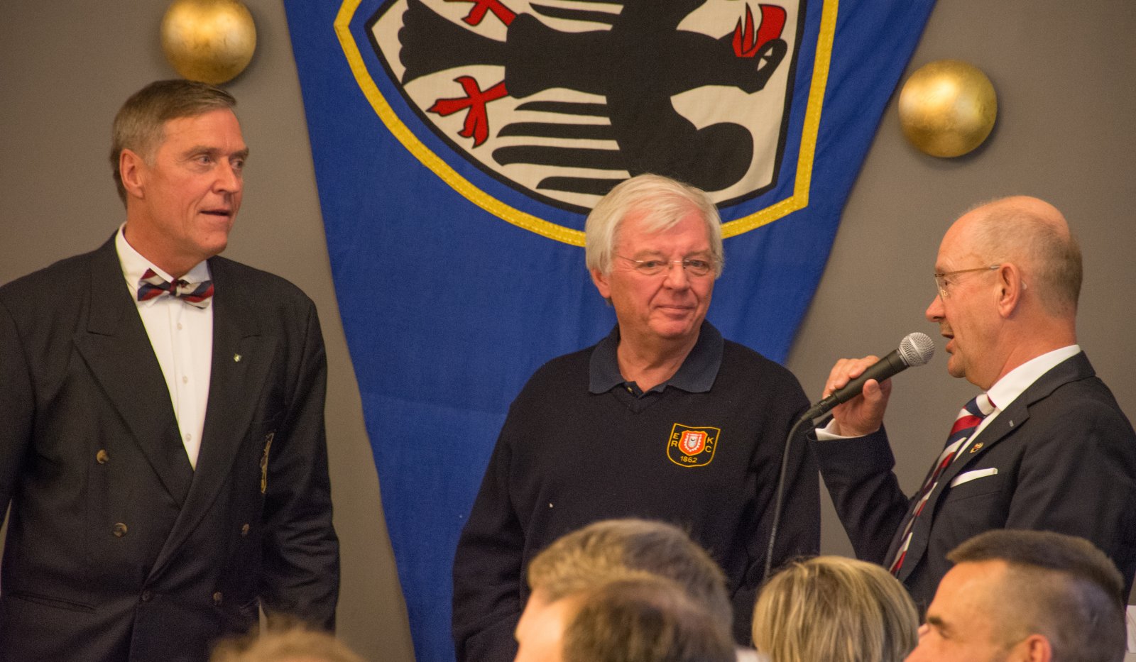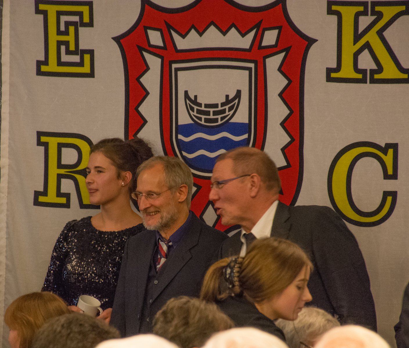 Frisch gestärkt, mit einem Klaren nachgespühlt und das erste Lied verhallt sehen wir dem ersten Block der Ehrungen entgegen. Die Jubilare werden wieder, wie in den vergangenen Jahren, von Laudatoren in teils launischen, teils persönlichen vorgestellt und geehrt. So bekommen wir noch einmal die Verdienste von »uns Uwe« – nein nicht Uwe Seeler vom HSV, sondern Uwe Johannsen vom EKRC – noch einmal in Erinnerung gerufen.