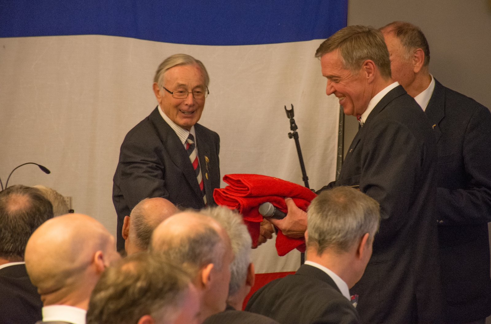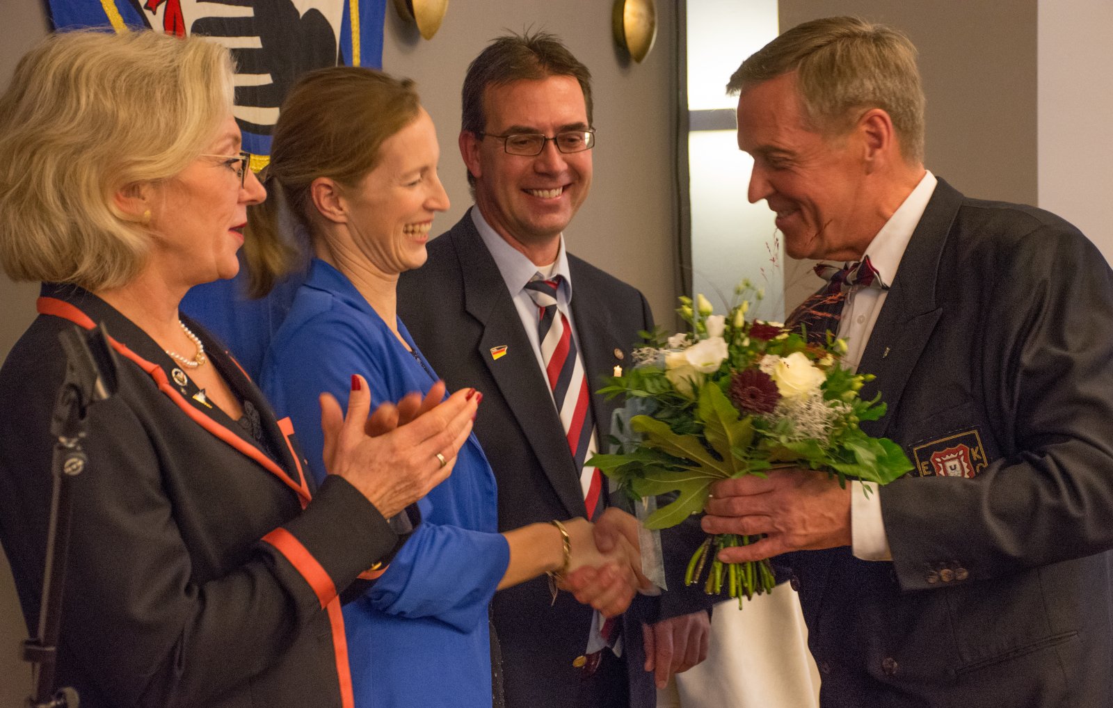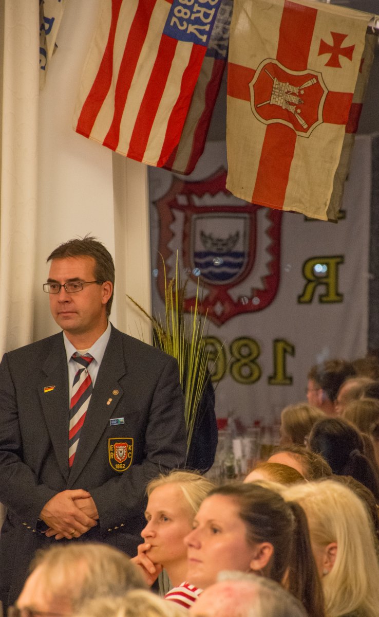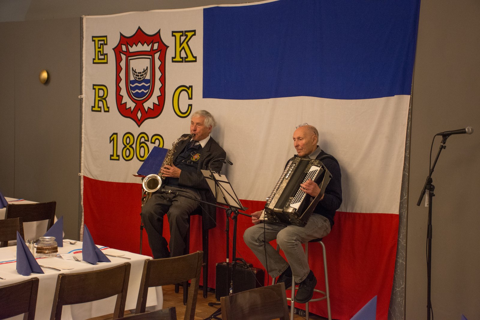 Frisch gestärkt, mit einem Klaren nachgespühlt und das erste Lied verhallt sehen wir dem ersten Block der Ehrungen entgegen. Die Jubilare werden wieder, wie in den vergangenen Jahren, von Laudatoren in teils launischen, teils persönlichen vorgestellt und geehrt. So bekommen wir noch einmal die Verdienste von »uns Uwe« – nein nicht Uwe Seeler vom HSV, sondern Uwe Johannsen vom EKRC – noch einmal in Erinnerung gerufen.