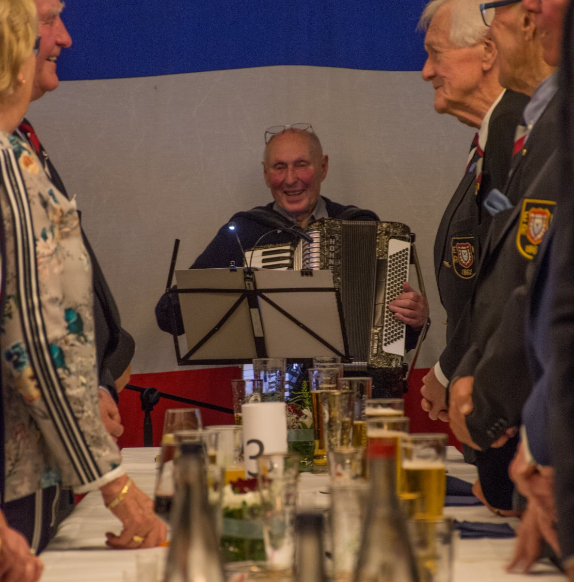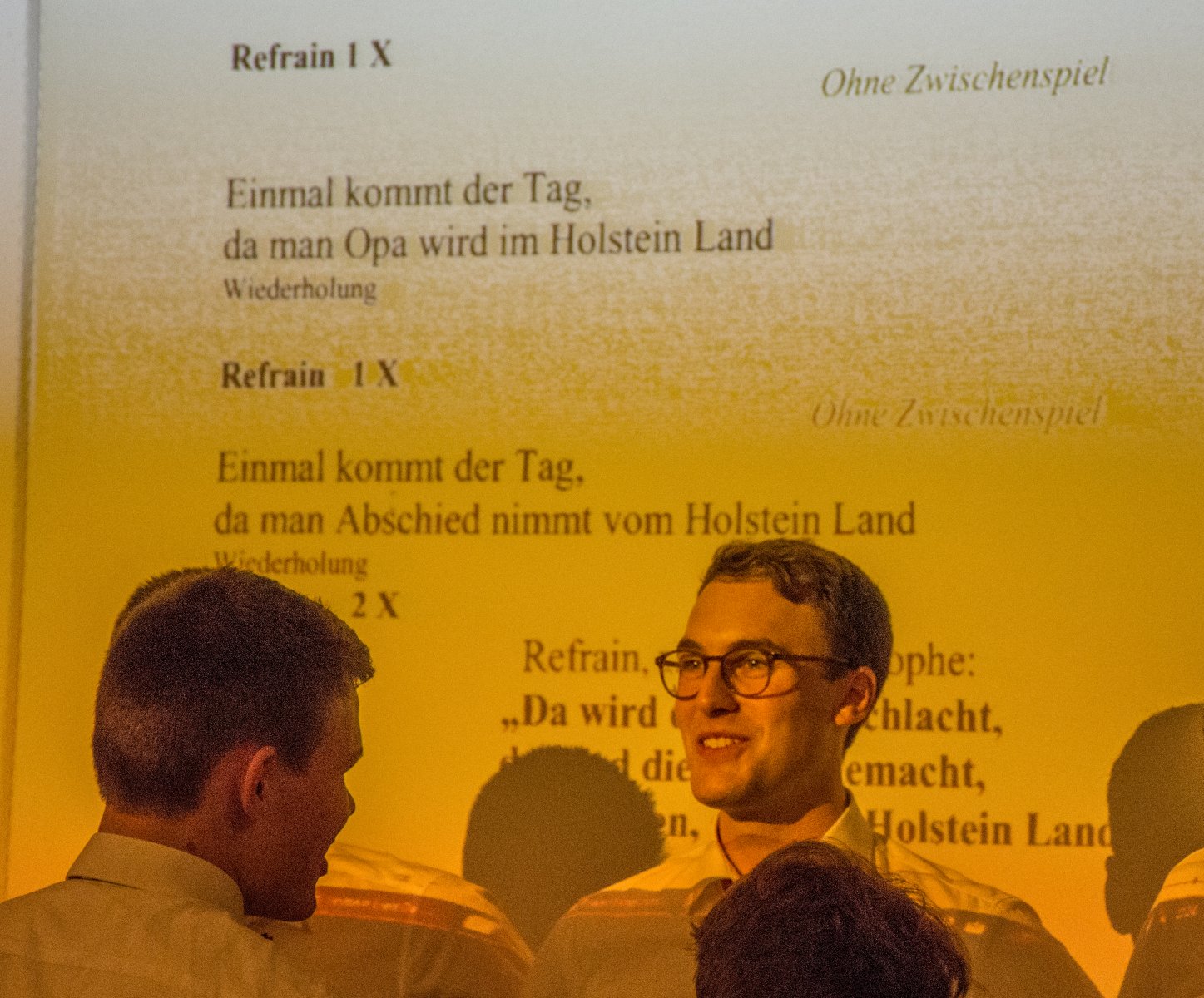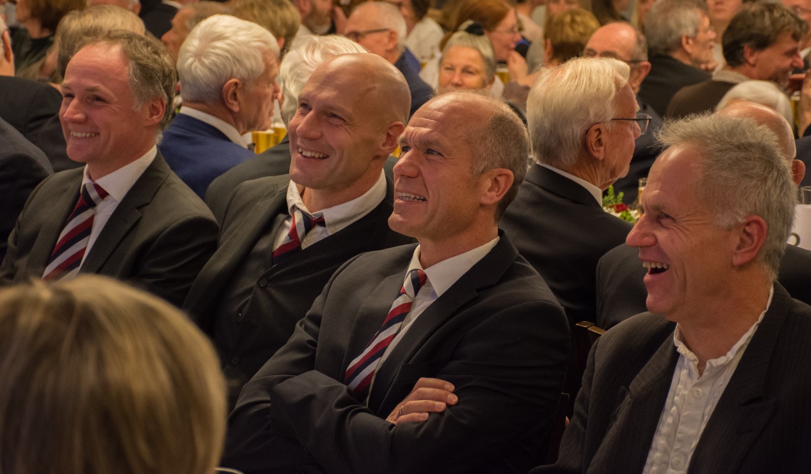 Die Jugend stellt mit einer geschlossenen Tischreihe wieder einen erklecklichen Teil der Teilnehmer. Und sie sind es dann auch, die sich seit Jahren immer wieder das Abschlusslied für den offiziellen Teil des Abends wünschen. So wird wieder, unter der musikalischen Begleitung von Pau und Alf, »die Sau geschlacht‘« – und alle, aber ganz besonders die Jugend, haben hierbei einen Heidenspaß!