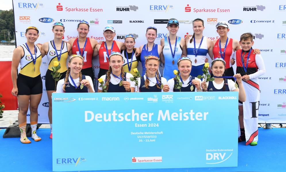 Mit insgesamt 9 Medaillen kehrten die Ruderer des EKRC von 1862 von den Deutschen Jahrgangsmeisterschaften auf dem Essener Baldeneysee nach Kiel zurück.