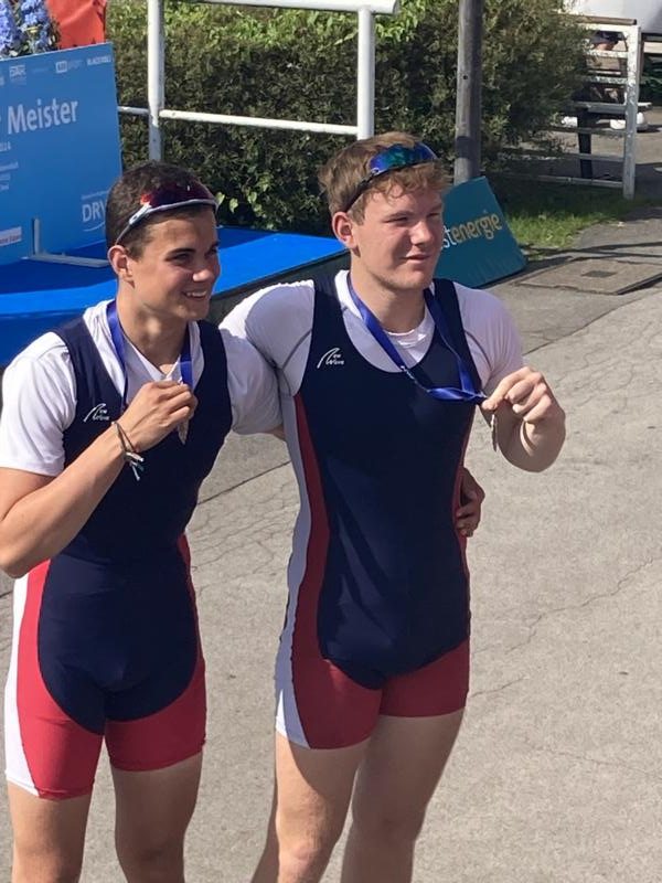 Sehr erfreulich auch die Silbermedaille im U17 Vierer mit Steuermann durch Mathis Lötzsch und Heinrich Peters im Auswahlboot des Landes-Ruder-Verbandes zusammen mit Ruderern aus Lübeck und Kappeln. Bereits nach dem klaren Vorlaufsieg durch war ein Medaillenrang dieser jungen Nachwuchsmannschaft in greifbarer Nähe. Heinrich und Mathis: „Am Anfang der Saison hätten wir nie gedacht, dass wir eine Medaille holen könnten, aber mit jedem Training in Lübeck wurden wir besser. So hat sich der hohe Aufwand jedenfalls gelohnt!“