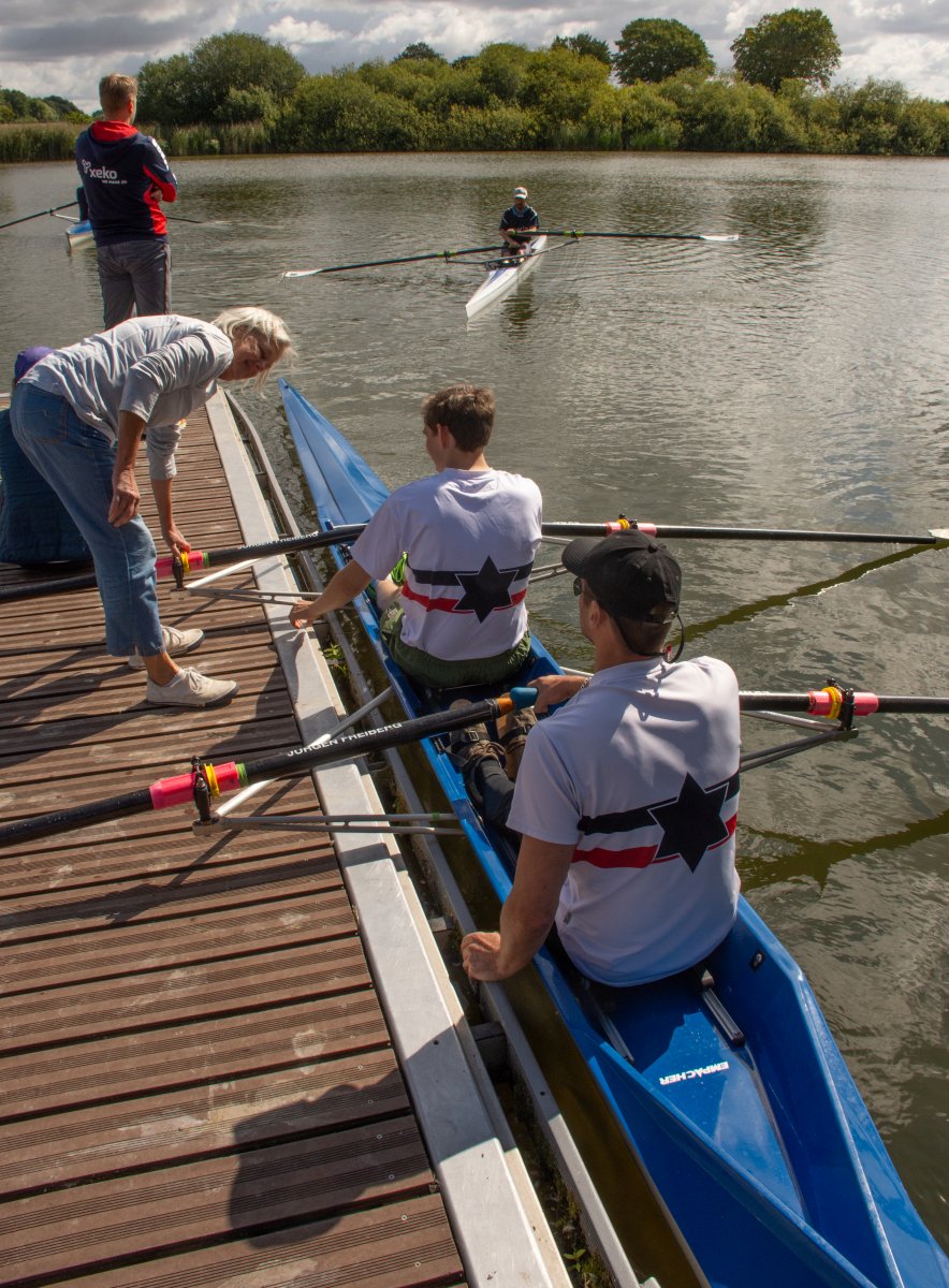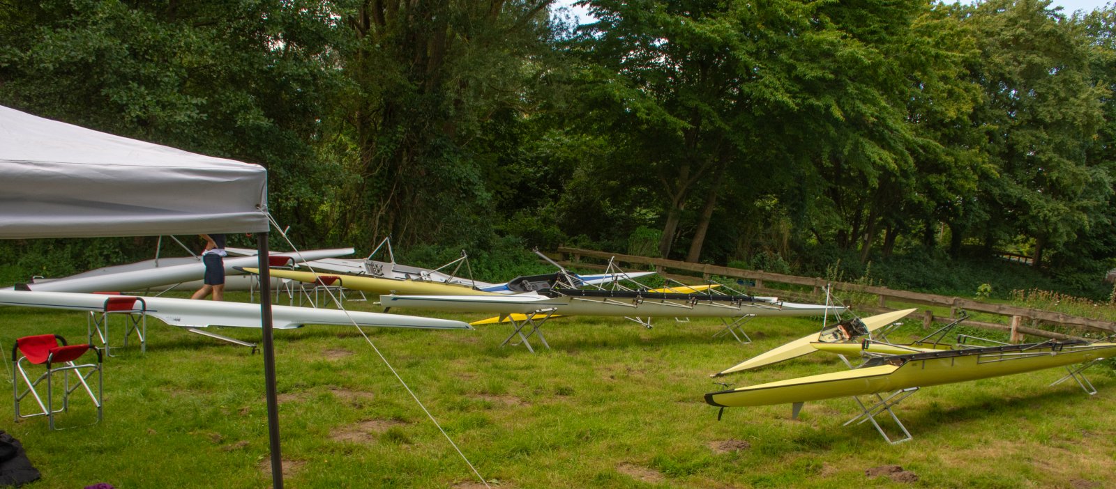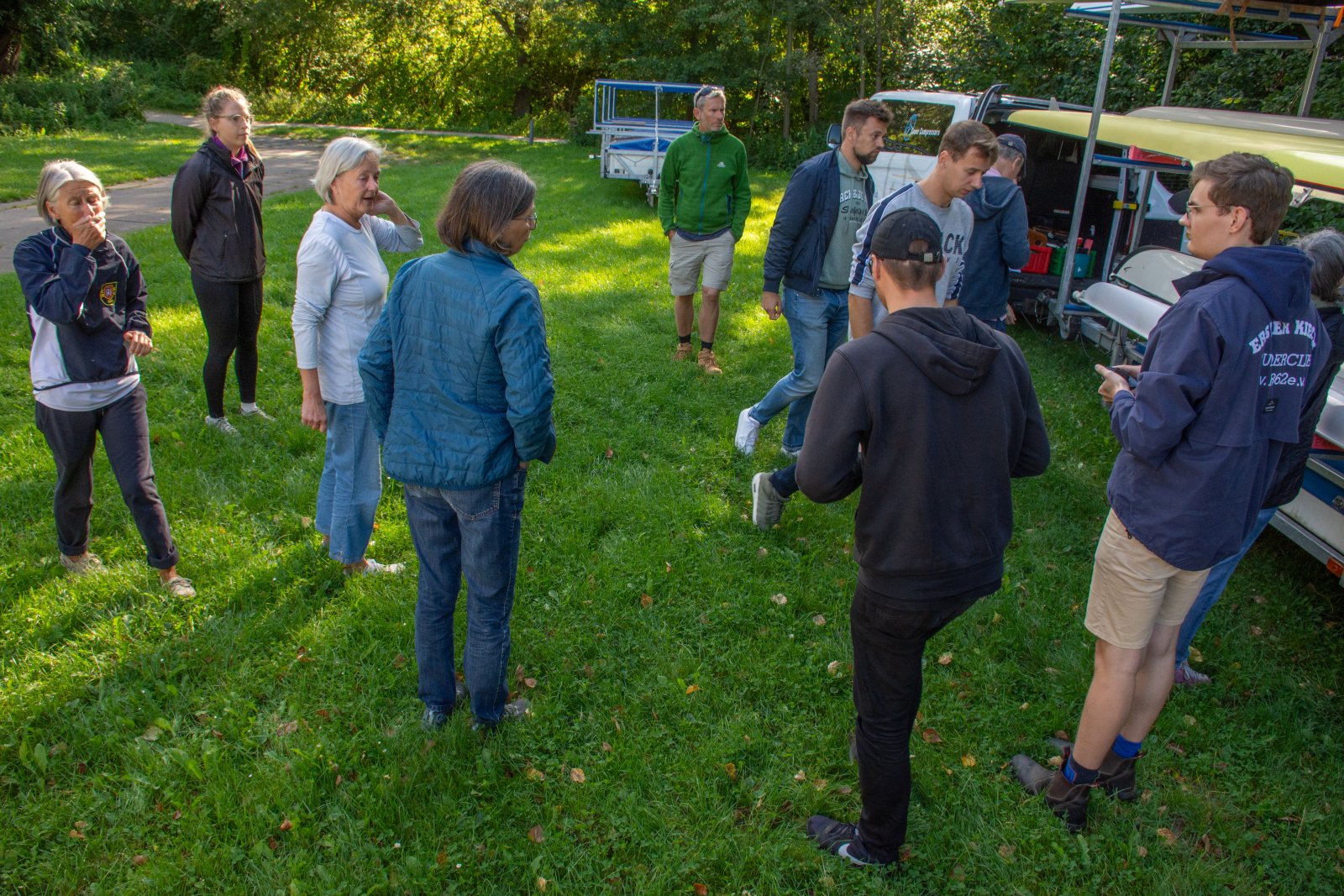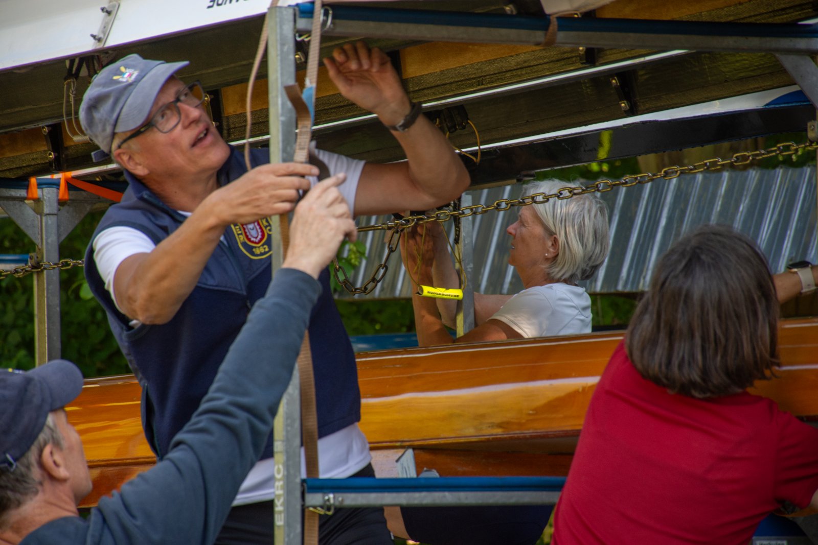 Der Ausflug nach Preetz beginnt eigentlich bereits am Vortag: Am Freitagabend werden Boote und Skulls (und Riemen), ein paar Böcke und ein Pavillon auf den Bootshänger geladen, damit es am Sonnabend gleich losgehen kann; die abmontierten Rollsitze und Ausleger müssen natürlich auch mit, alles ordentlich beschriftet. Am Ende warten 14 Boote, vom Einer bis zum Vierer, eng verschachtelt auf ihren Einsatz in Preetz – ein neuer Laderekord!