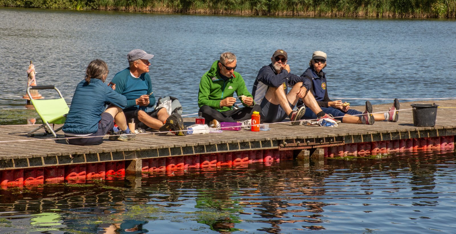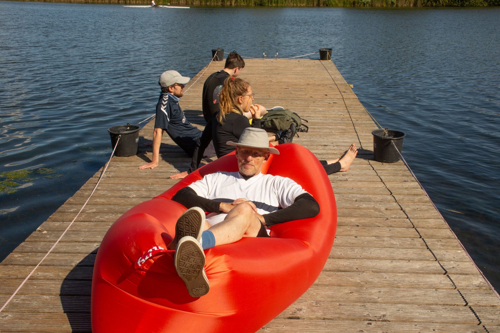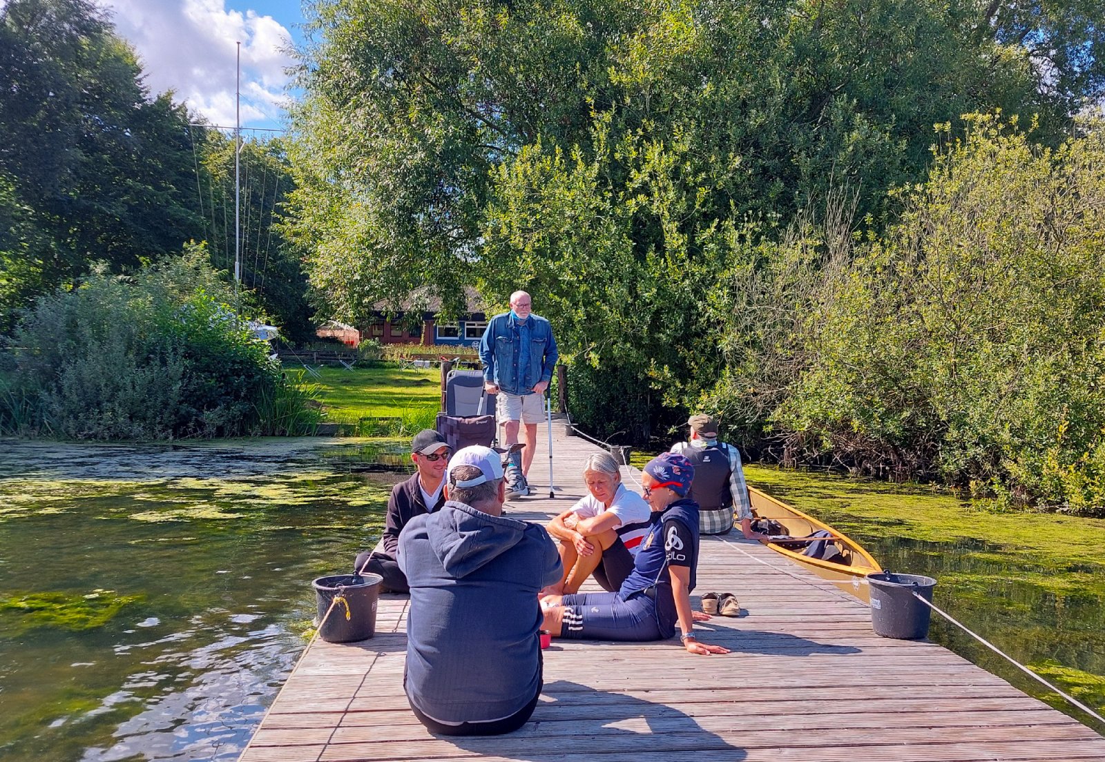 Ab und an frischt der Wind etwas auf und erschwert so manches Anlegemanöver, aber die Sonne scheint, und wer gerade nicht rudert, macht es sich auf dem sonnigen Steg gemütlich und beobachtet und kommentiert (fachkundig!) das rege Treiben auf dem Wasser. Dazu gibt es mitgebrachte Brote, Kekse und sogar Kaffee und Kuchen.