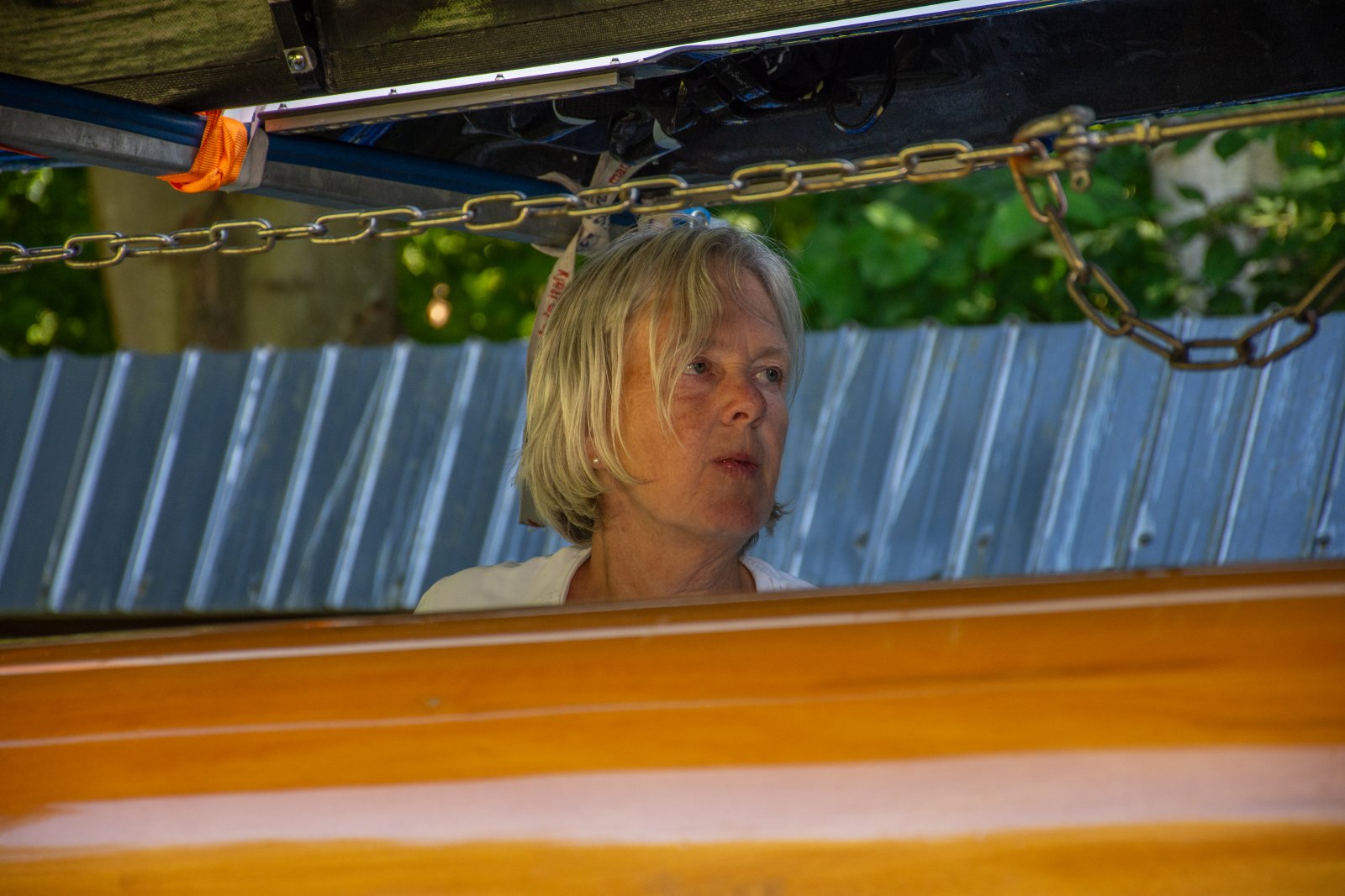 Am späten Nachmittag werden die ersten Boote wieder abgeriggert, Rollschienen geputzt, Bootsrümpfe mit Gießkannen statt mit Wasserschläuchen abgespritzt. Das Verladen geht insgesamt viel flotter als am Vortag, und genauso auch das Aufriggern vorm heimischen Clubhaus in Kiel.