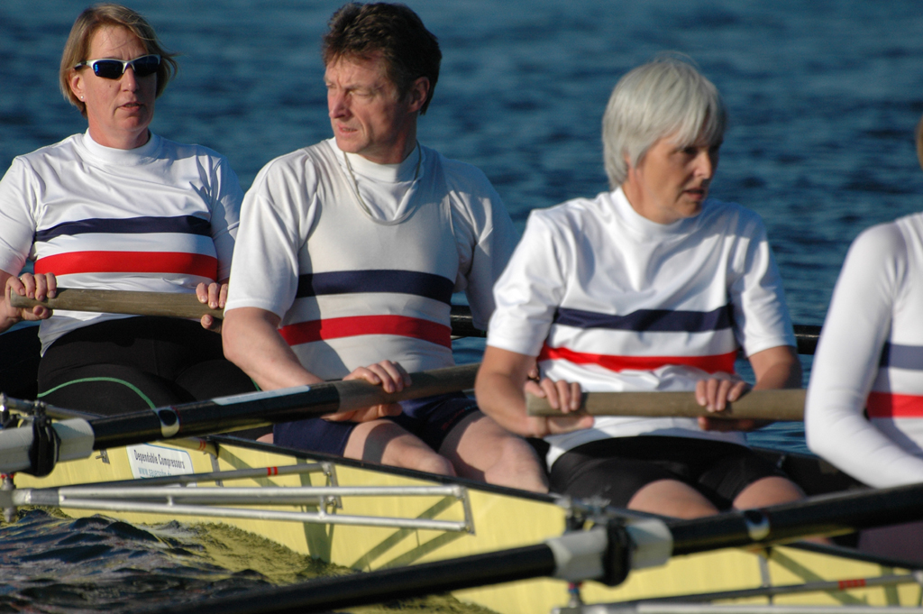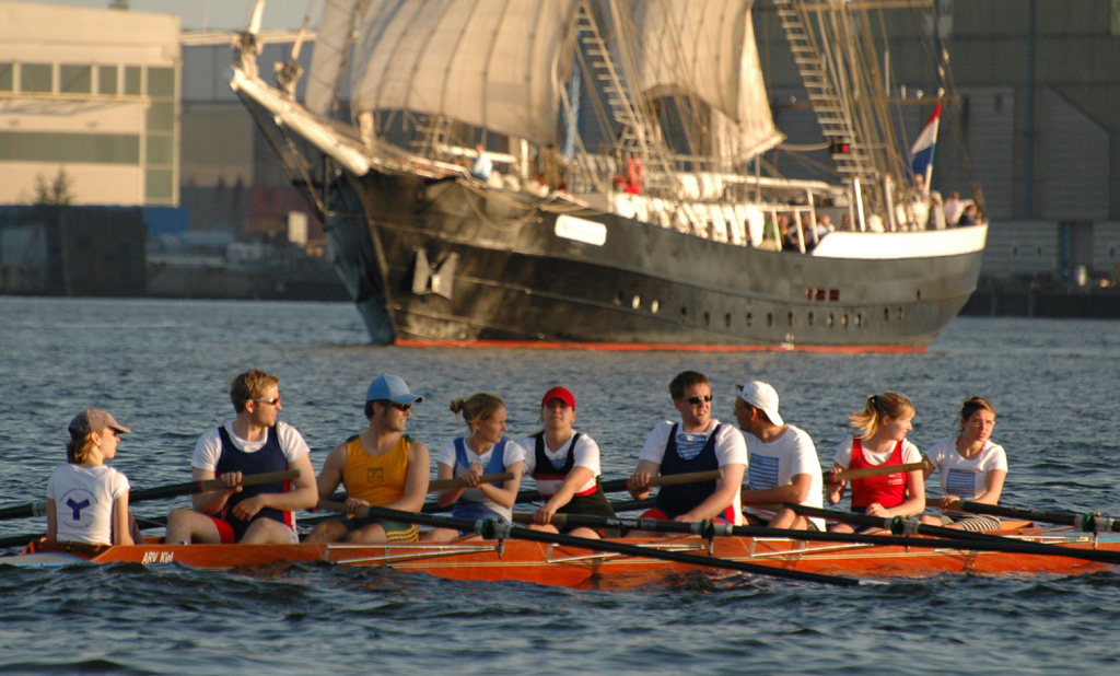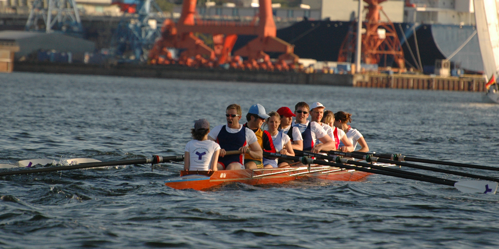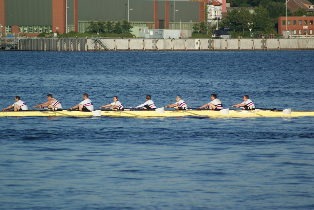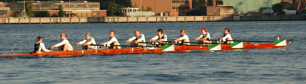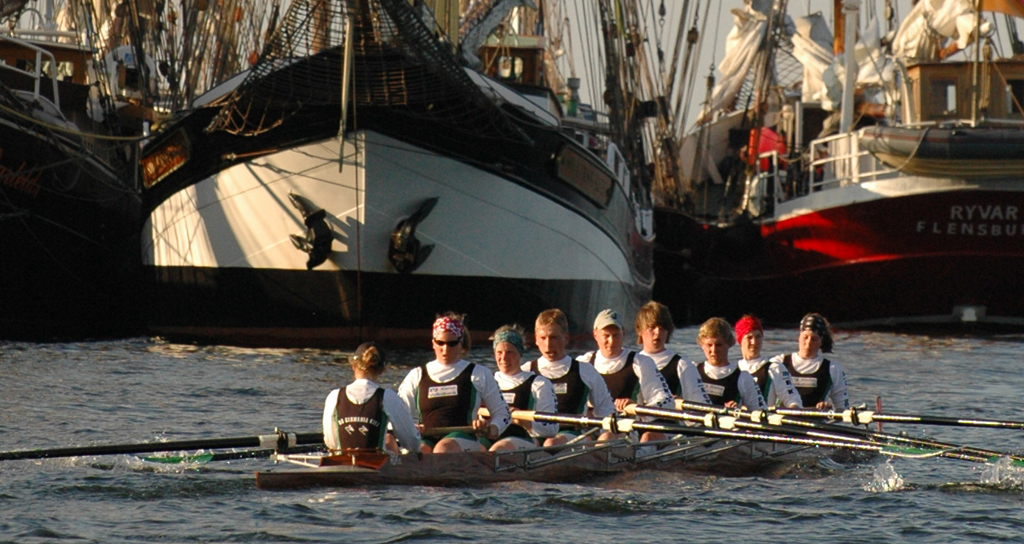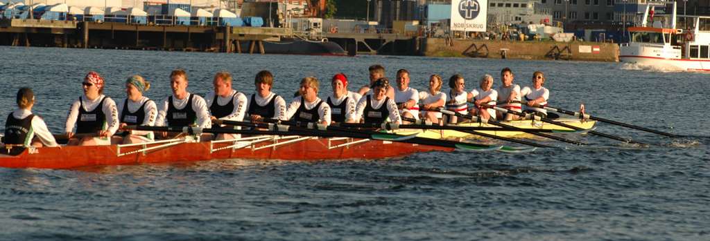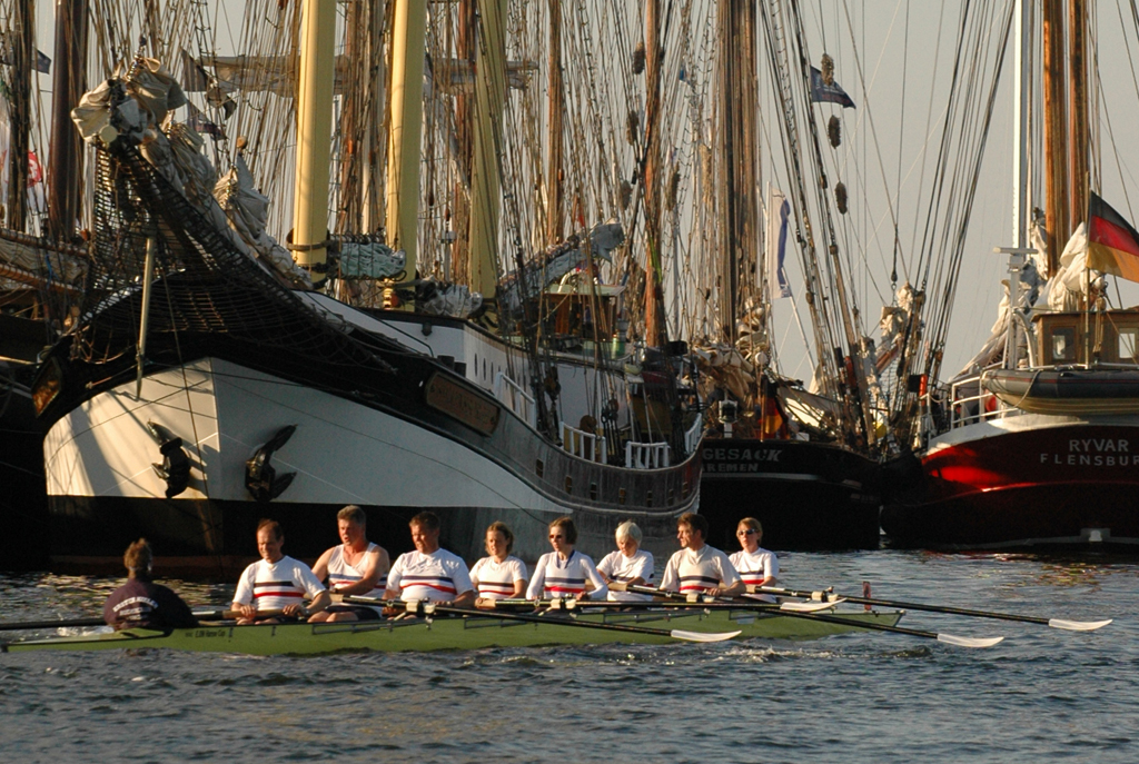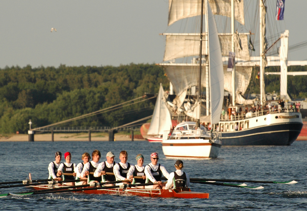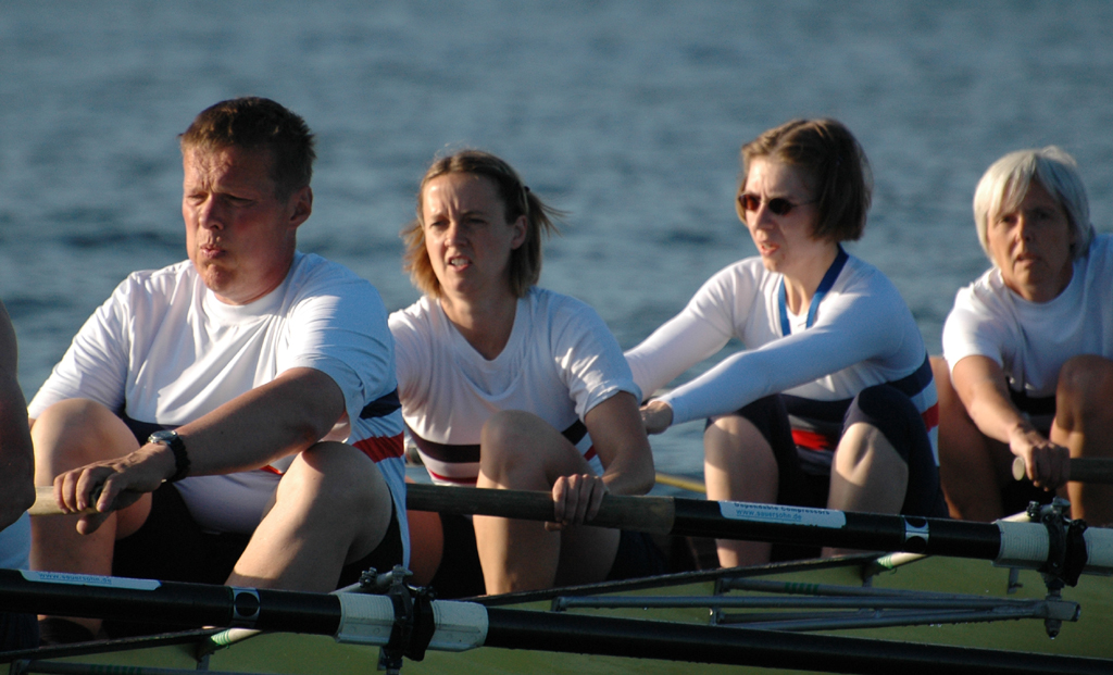 Ganz anders die Mannschaft des EKRC-Achters um die Obfrau Christina Dunsing mit Leon Schulz an den Steuerseilen und seinem Vater Harald »Grommek« Schulz auf Schlag. Mit dabei noch Martin Lorenzen, Bernhard Kaczenski (kurzfristig für den erkrankten Justus Tolk eingespriungen), Siegfried Schürmann, Ulrike Zumegen, Dorit von Weydenberg und Maja Darmstadt. Mehrmals wurde trainiert, die Taktik häufig besprochen und auch an der Motivation hat es nicht gelegen.