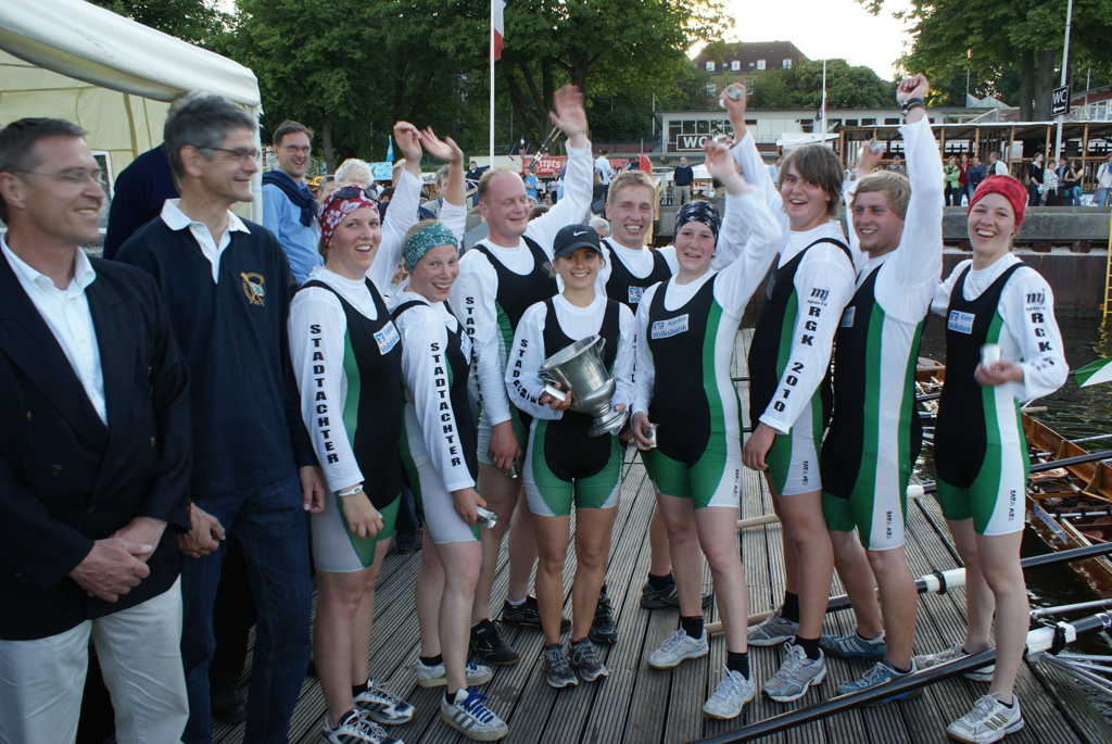 Am Anfang lag das EKRC-Boot noch in Führung. Gab diese jedoch im Laufe des spannenden Rennens jedoch an die Germania ab. Mit einer Bootslänge Vorsprung sicherte sich die jugendliche Auswahl der Germania ihren insgesamt fünften Sieg. Viermal hat ARV gewonnen, dreimal der EKRC.