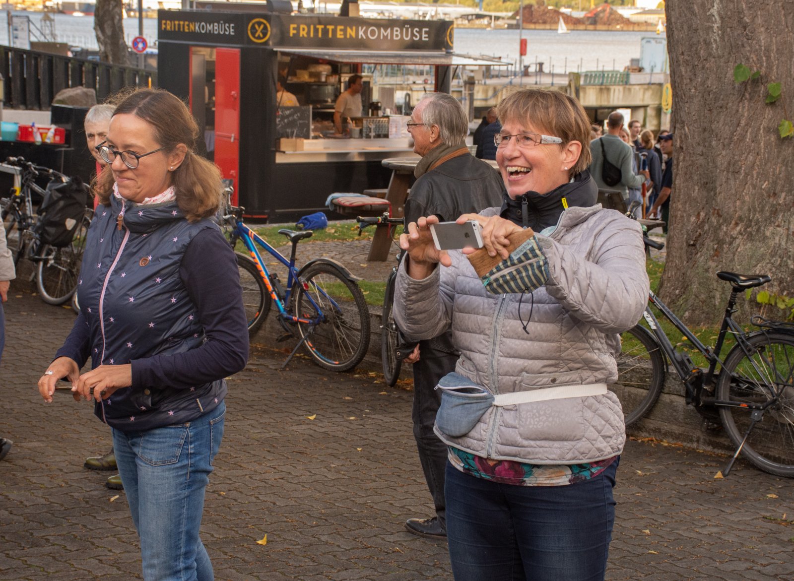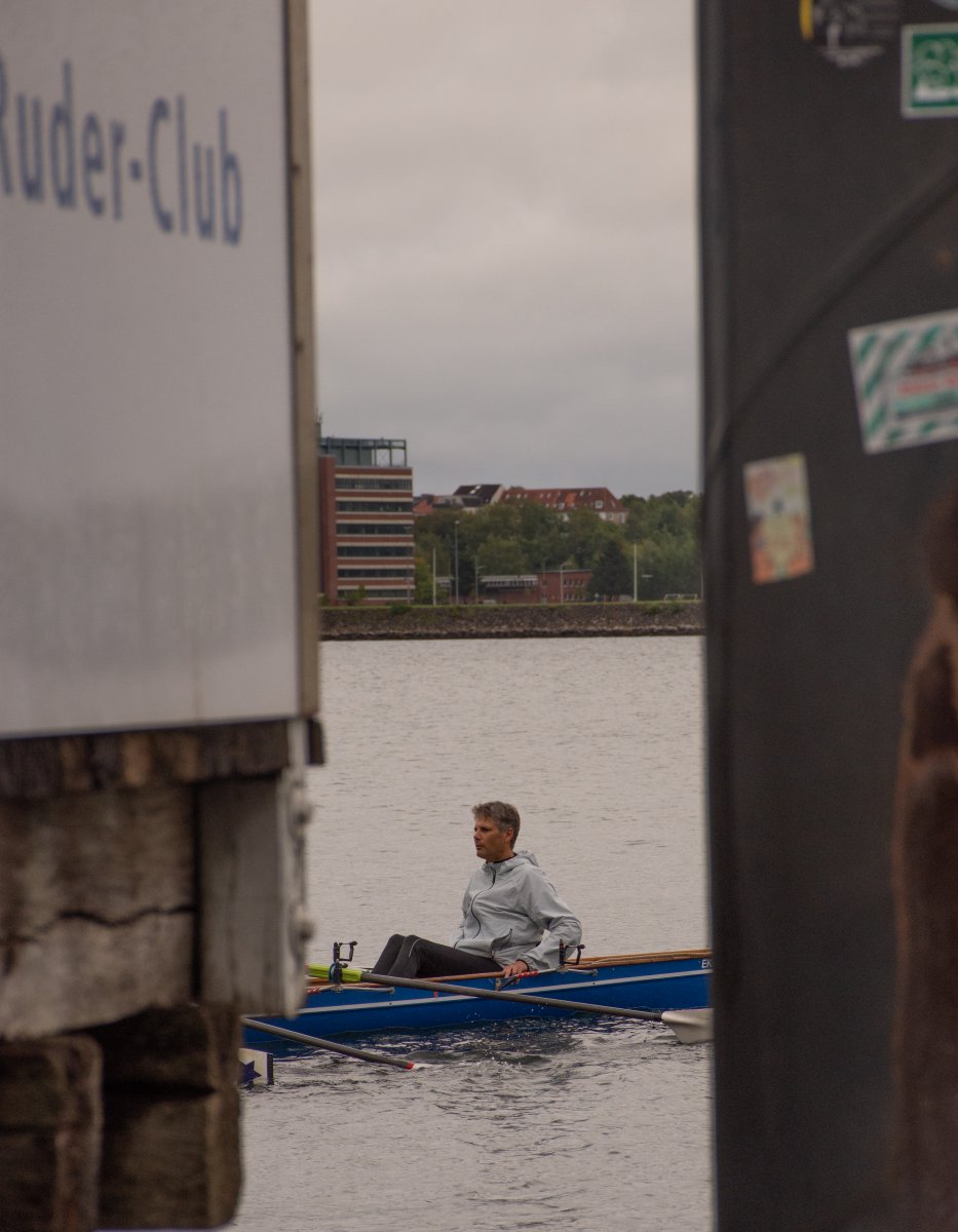 Noch etwas ist ungewohnt. Dominieren sonst zur Kieler Woche die Segler die Förde, läuft in diesem Jahr der Ruderbetrieb bei den Vereinen weiter – dementsprechend treffen wir dieses Jahr immer wieder Ruderboote auf der Förde an.