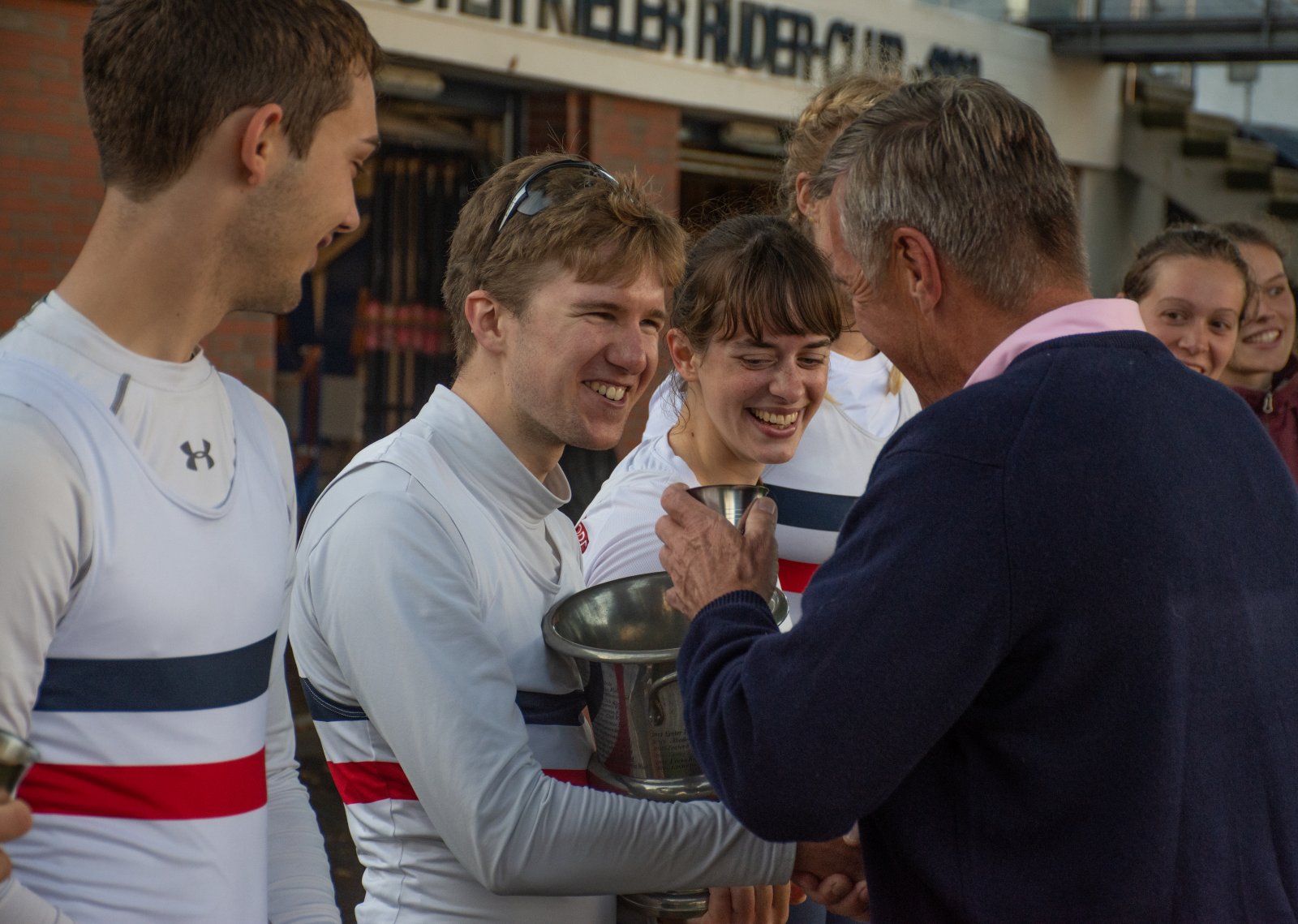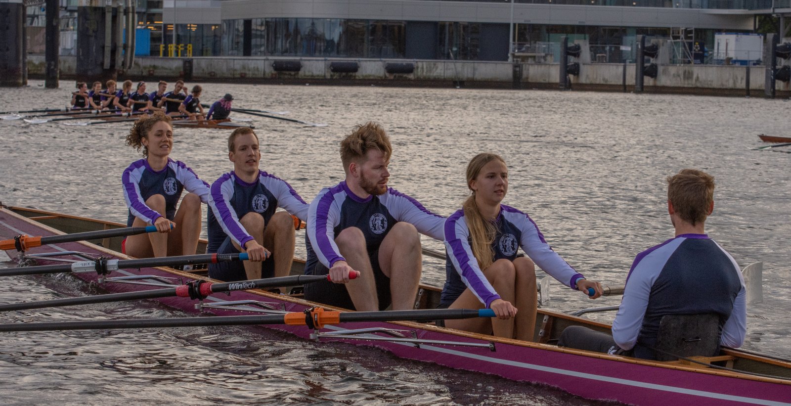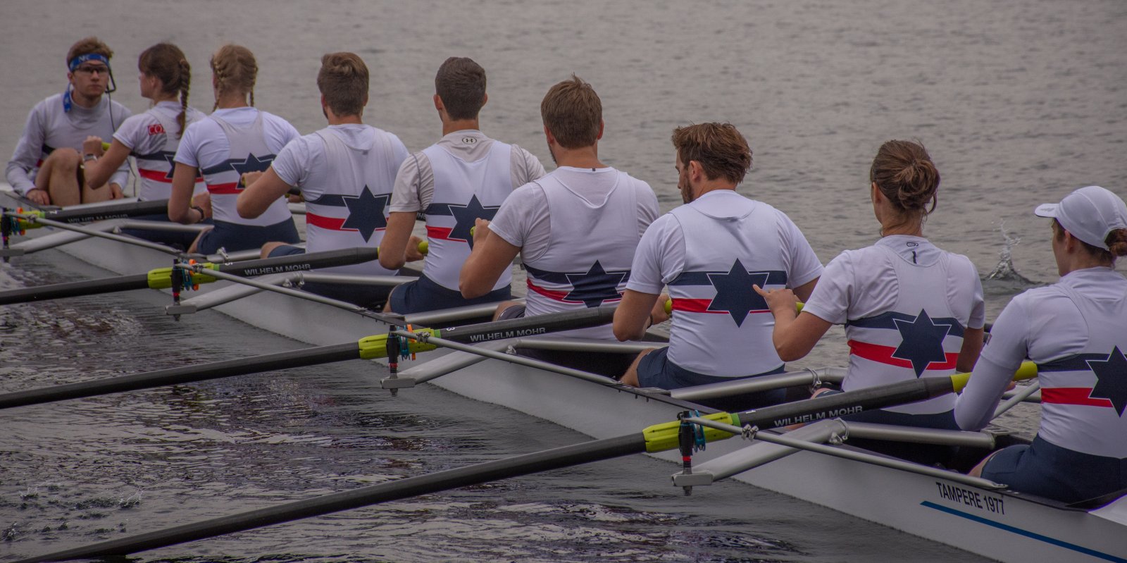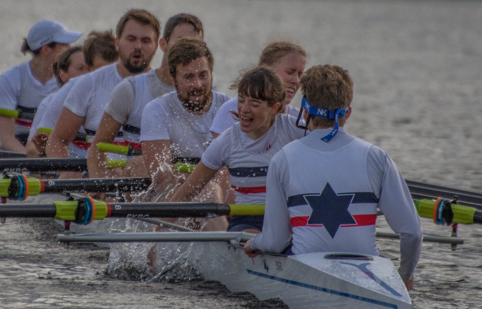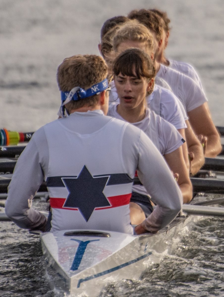 Die Mannschaft hatte sich bald gefunden: Inken Töwe (Bug), Leslie Matthiesen, Tim Piesch, Arne Möller, Frederik Enger, Jan-Phillip Schmidt, Mona Flathmann, Maj Seifert (Schlag) und Felix Eckel (Stm). Eigentlich war im Bug Anna Brinkmann eingeplant. Doch vor dem Start gab es Uneinigkeit über die Einstufung von Annas Teilnahme an einer Ergo-Regatta im Januar, da nach den Statuten ja nur ‚Freizeitruderer‘ am Stadtachter teilnehmen dürfen. Um lange Auseinandersetzungen zu vermeiden, trat Anna zurück und Inken nahm ihren Platz ein.