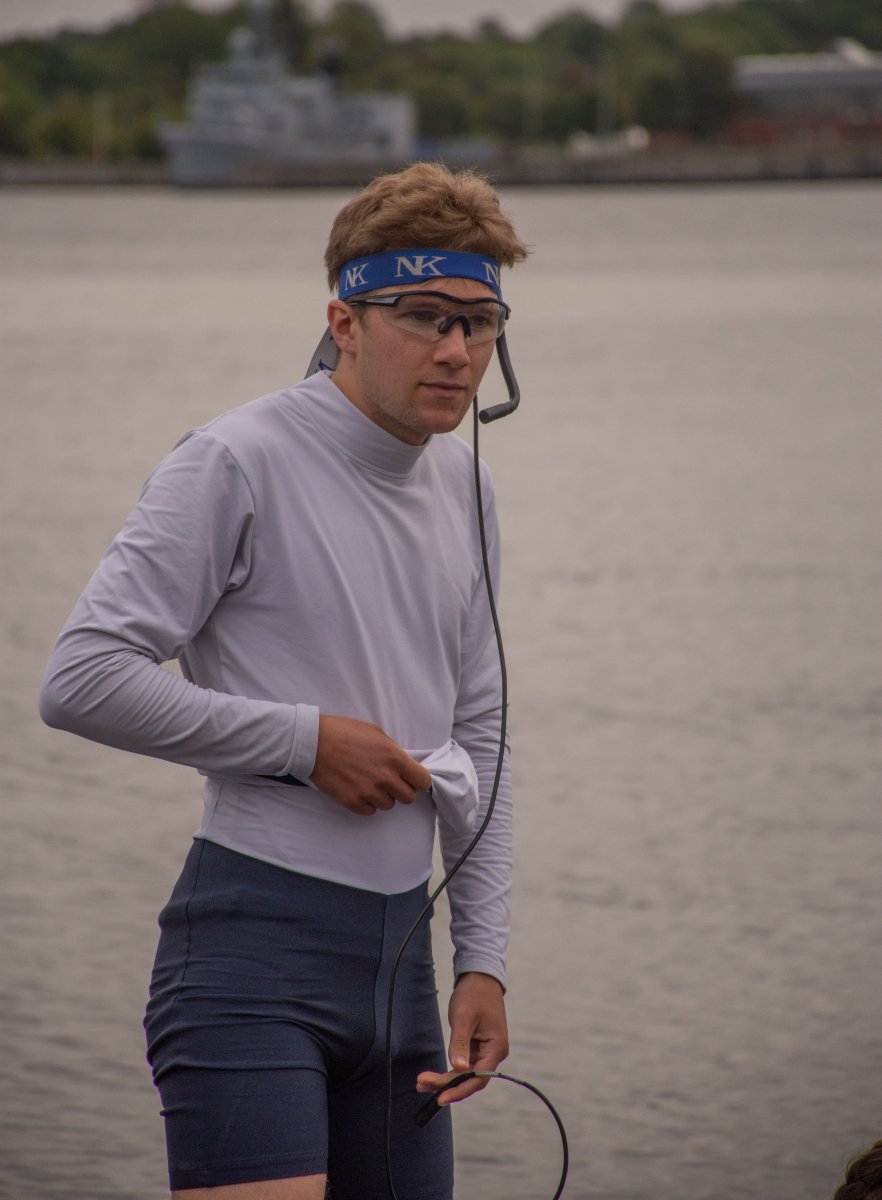 Jan-Phillip ist vor drei Jahren über den Anfängerkurs ins Boot gekommen und sich letztes Jahr zum Ziel gesetzt, in diesem Jahr dabei zu sein. Für ihn ist dies das erste Rennen und bringt für ihn viel Neues: „Ich wusste gar nicht, dass beim Start jeder Schlag eine besondere Aufgabe hat. Ich dachte, es wäre einfach Start und los“ meinte er denn auch einmal, als mal wieder die ersten fünf Schläge beim Start trainiert wurden.