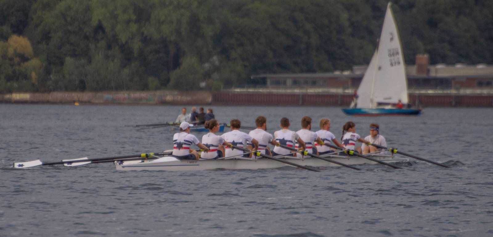 Als im Frühjahr klar wurde, dass die Kieler Woche ausfallen würde, hatten die meisten Ruderer die diesjährige Regattasaison – und damit auch den Stadtachter – mental bereits abgeschrieben. Mit Wiederaufnahme der Planungen für die ‚kleine‘ Kieler Woche kam dann auch die Anfrage der Organisatoren, ob sich die Kieler Rudervereine an dem Sportprogramm im Rahmen der Veranstaltung beteiligen würden. Natürlich haben die zugesagt, befinden wir uns als Freiluftsportler doch in der privilegierten Situation, unseren Sport inzwischen wieder weitgehend ohne Einschränkungen ausüben zu können.