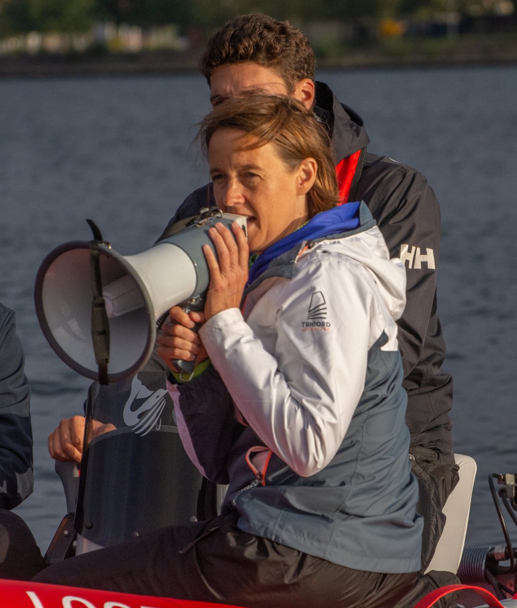 Inken und Leslie im Bug sind erfahrene Regattaruderinnen, die im Bug auch in der Lage sind, sich selber zu motivieren: Während des Rennens sollte auf etwa der Hälfte der Strecke der Buglautsprecher einen Defekt haben, so dass der Steuermann im Bug nicht mehr zu verstehen war. Die beiden würden damit gut umgehen können.