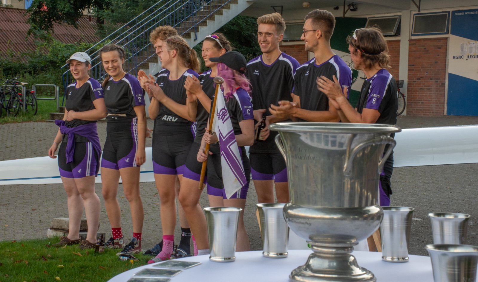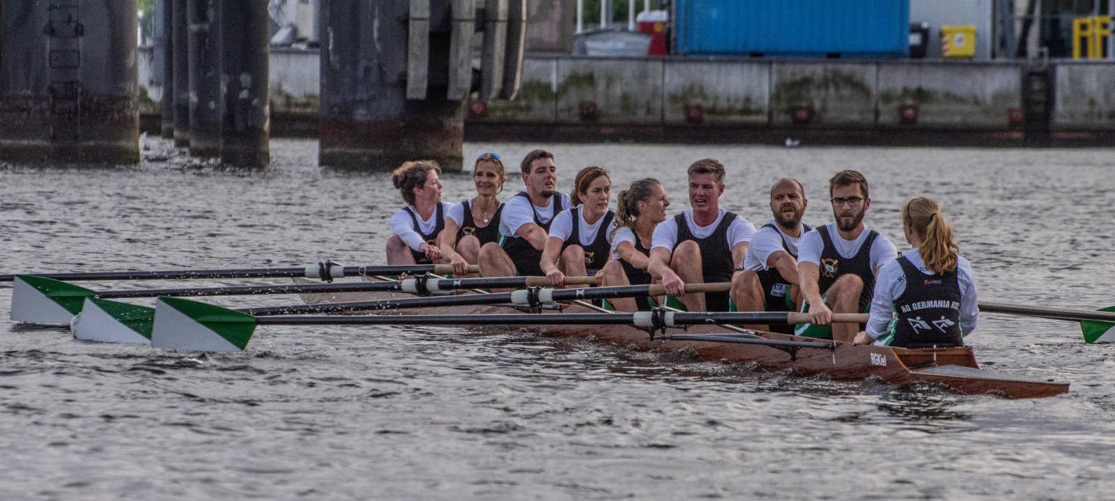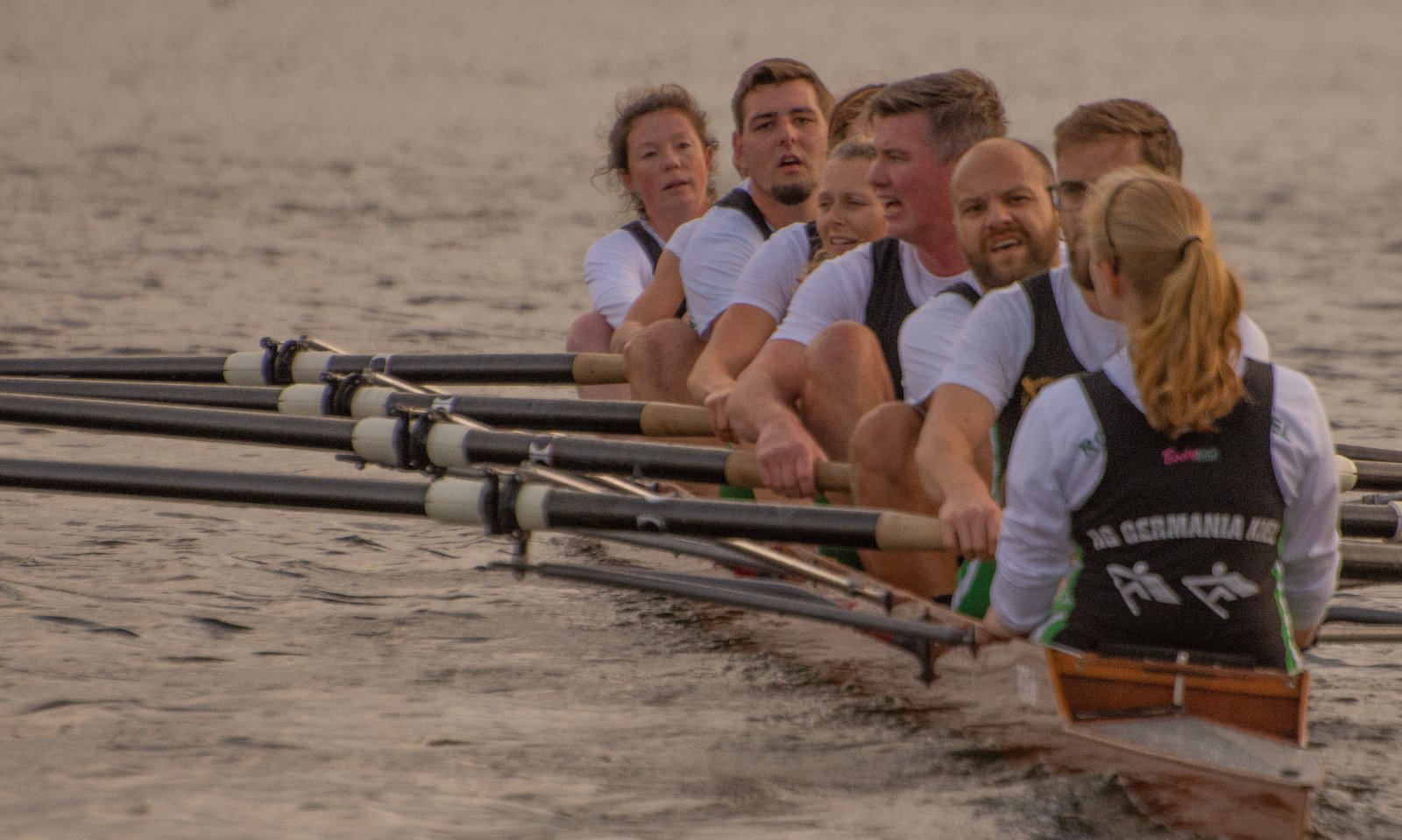 In einer Disziplin haben die Ruderer der Germania heute dann doch die Nase vorn. Während die anderen Mannschaften noch ihren Platz auf der Wiese suchen, stoßen die Germanen bereits mit einem kalten Bier auf ein gelungenes Rennen an.