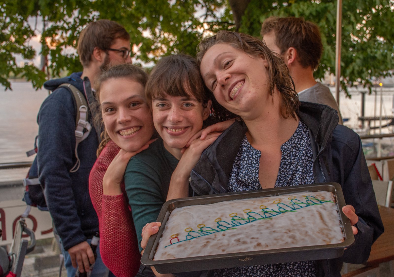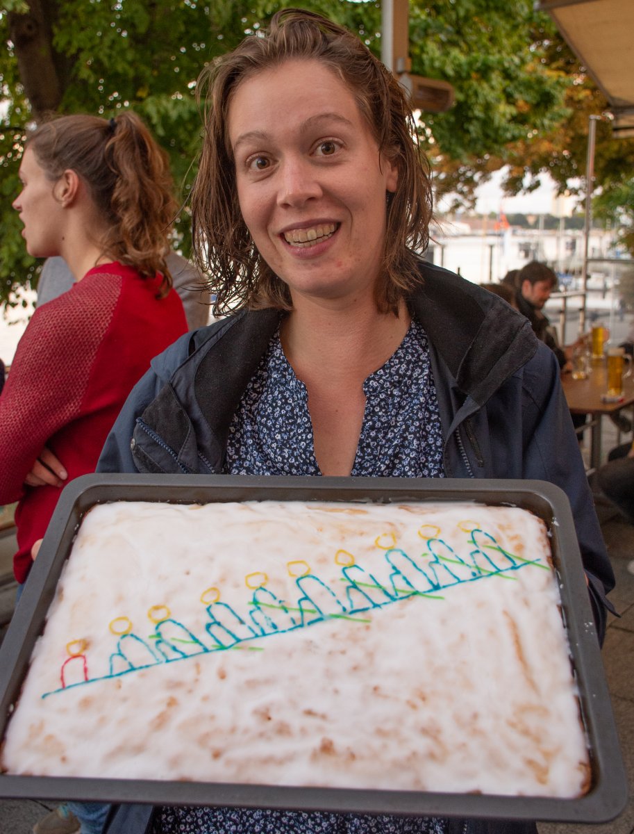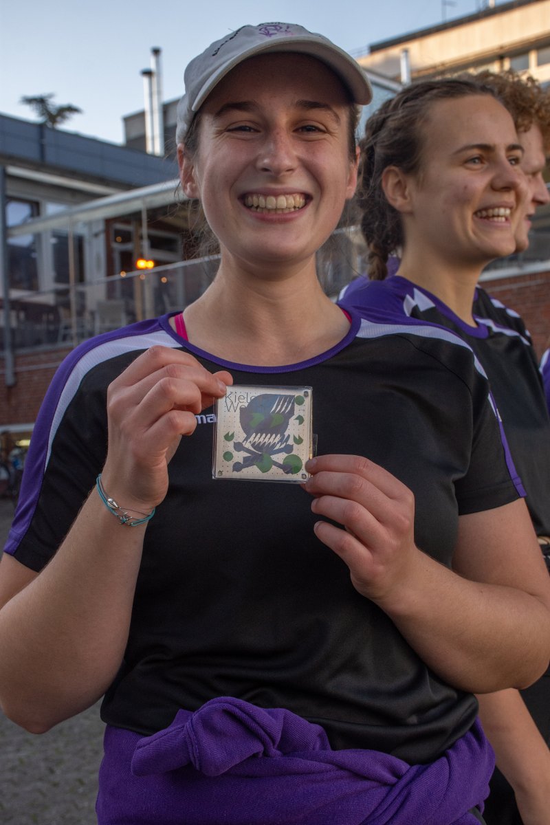Die traditionelle große Sause auf Einladung der Vorjahressieger fällt den geltenden Auflagen zum Opfer. Stattdessen treffen wir uns in kleinem Kreise auf der Terrasse zum Abschluss eines erfolgreichen Tages. Leslie hat einen Themenkuchen gebacken mit ganz vielen Ruderern drauf. Ein gelungener Ausklang für den 23. Stadtachter, ein Stück Kieler-Woche Tradition haben wir gerettet. Nicht selbstverständlich angesichts dessen, was sonst gerade als Kieler Woche um uns herum in der Stadt abläuft!