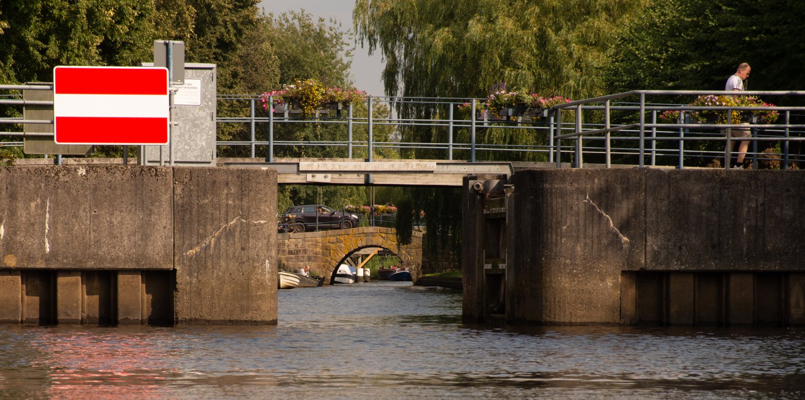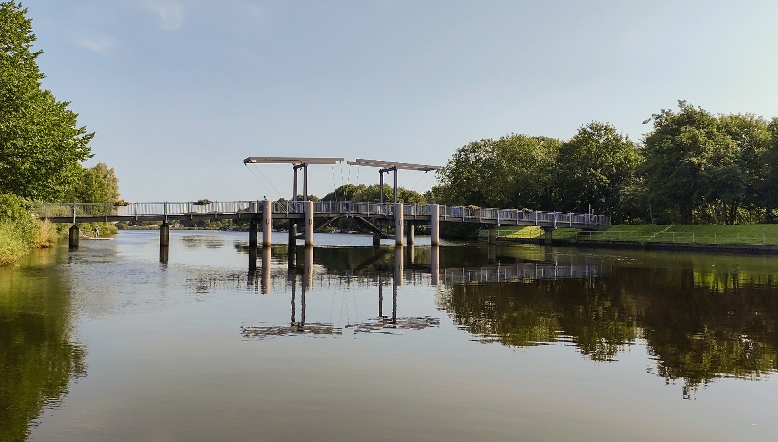 „Auf einen Fluss hat man in der Regel wenig Probleme mit dem Wind im Gegensatz zu uns auf der Förde.“ Dieses Vorurteil müssen wir revidieren. Auf dem Rückweg hat der Wind aufgefrischt, ungebremst bläst er uns, je nach Flussverlauf, überwiegend entgegen. Die jetzt schon dem Wasser sichtbaren Wellen lassen erahnen, wie das Revier bei richtigem Wind aussuchen könnte. Und Wind kann man schließlich hier an der Westküste!