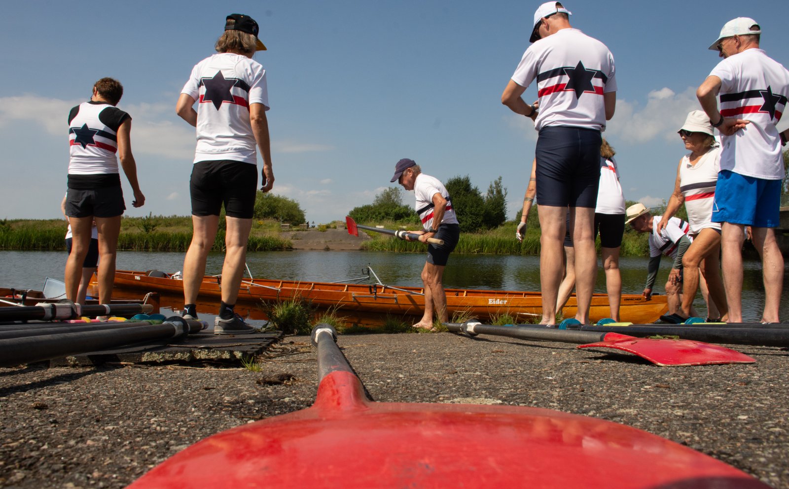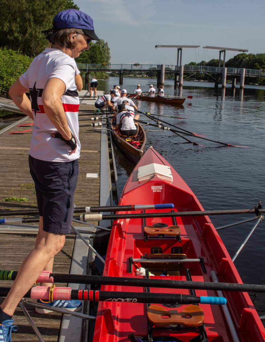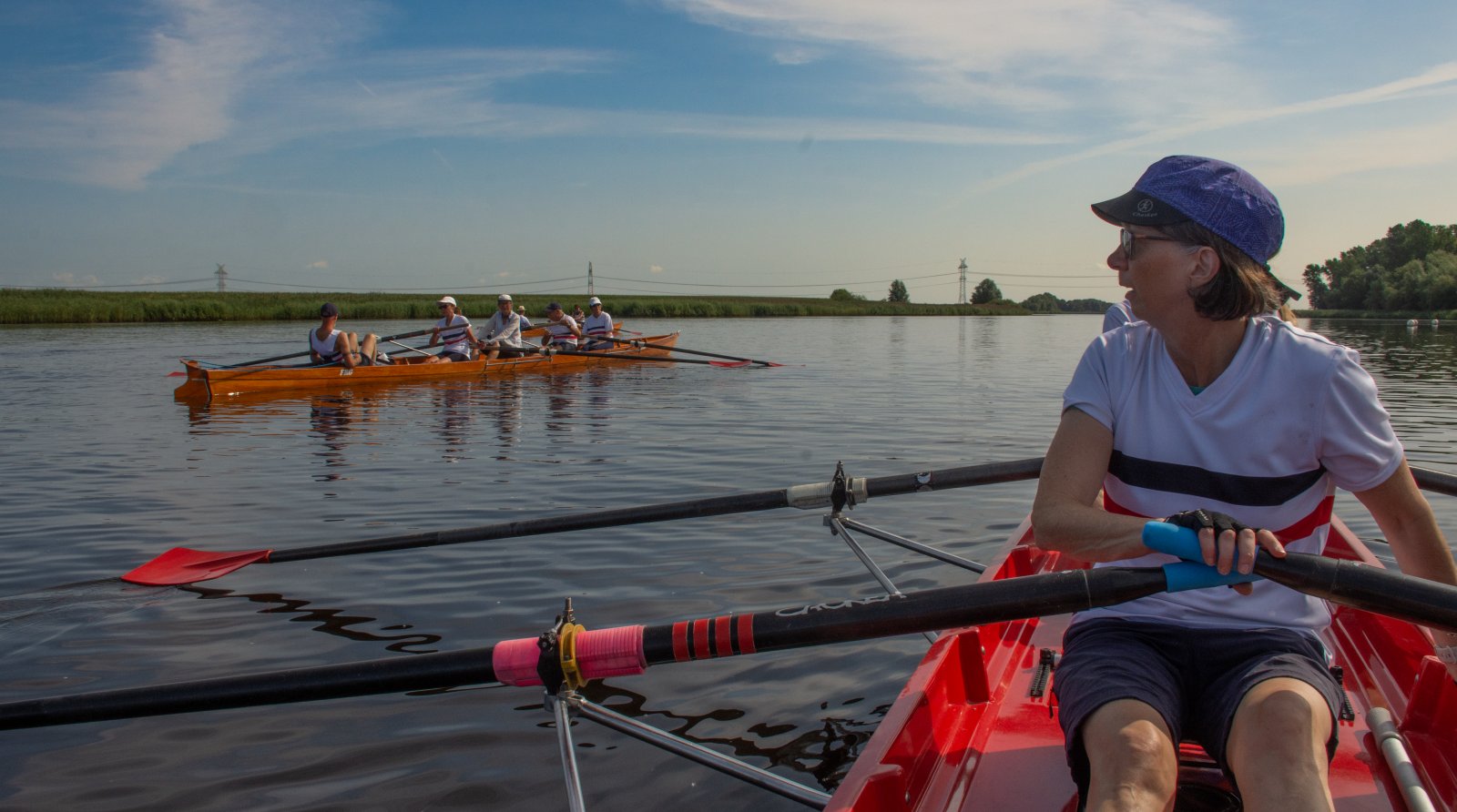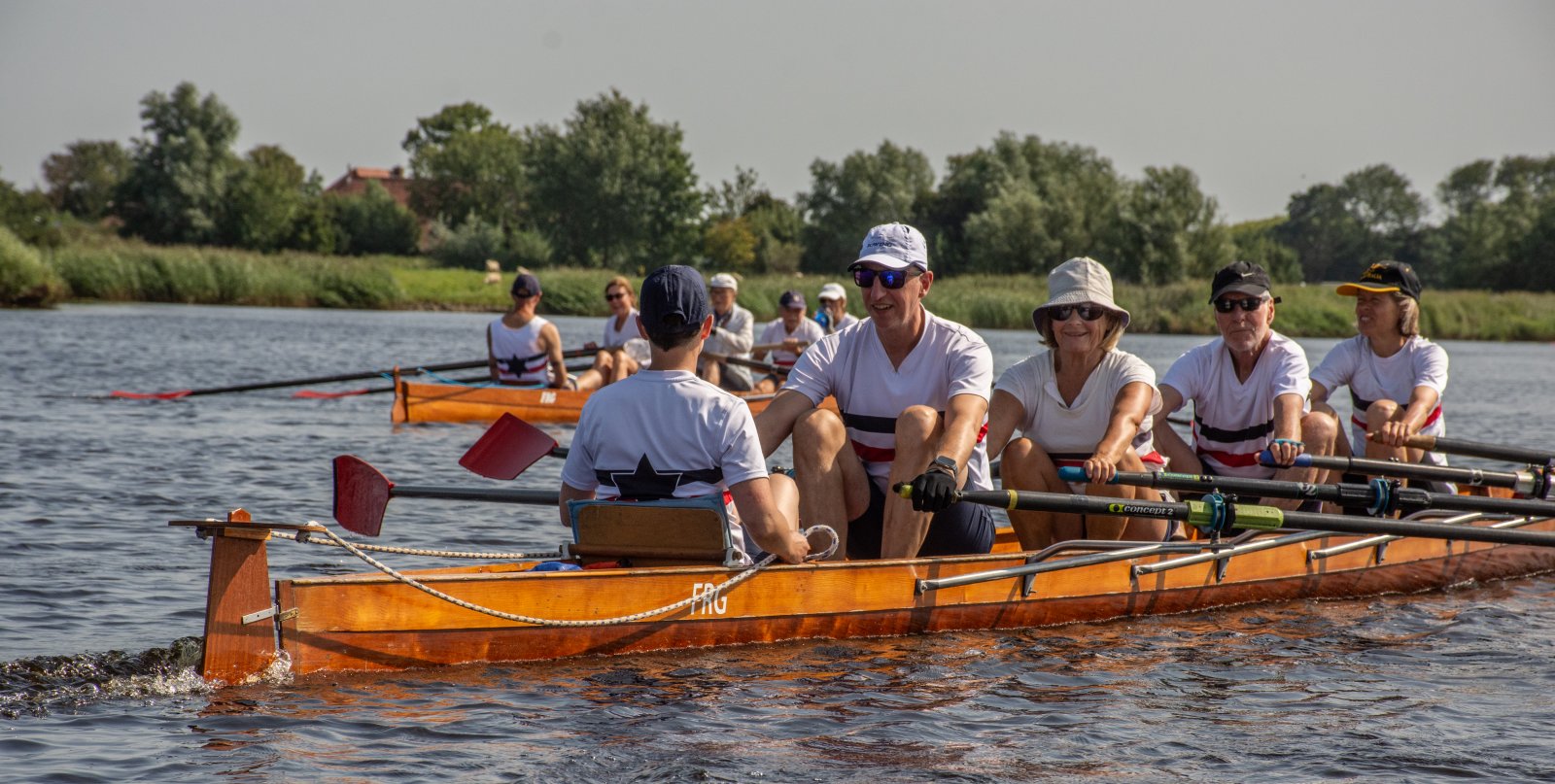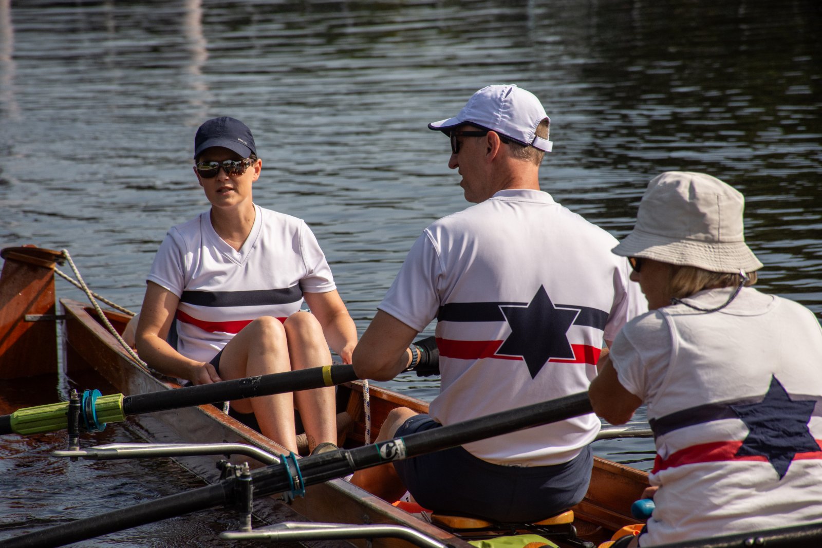 Wir sind zu Gast bei der Friedrichstädter Rudergesellschaft (FRG). Im Vorfeld gibt Claus die verfügbaren Bootsplätze bekannt. Die Liste enthält zwei Riemenboote, darunter einen Zweier. Insbesondere Letzterer sorgt für schlaflose Nächte bei einigen Teilnehmern: „Ich bin doch noch nie Riemen gerudert!“