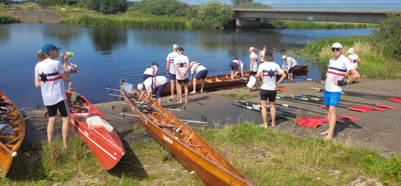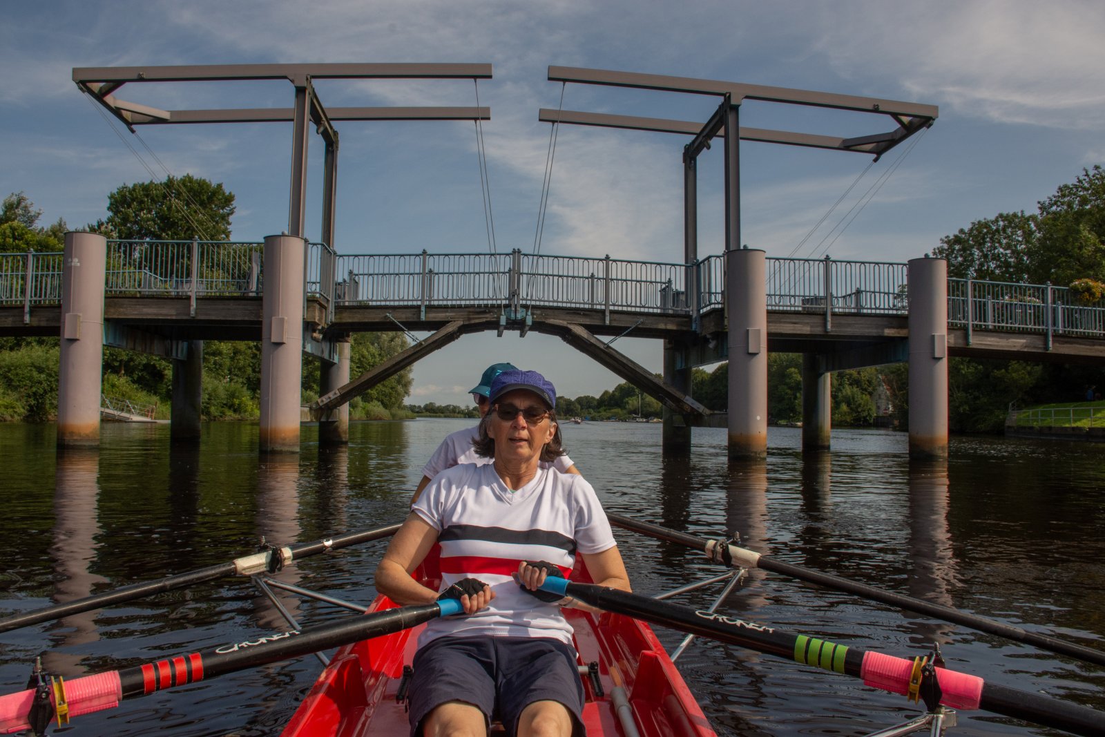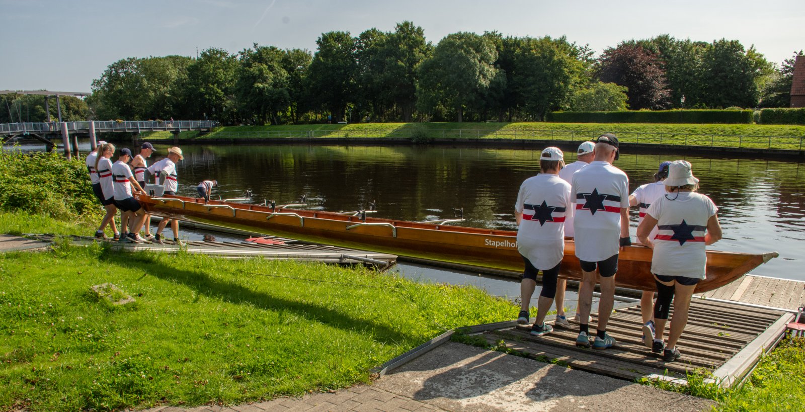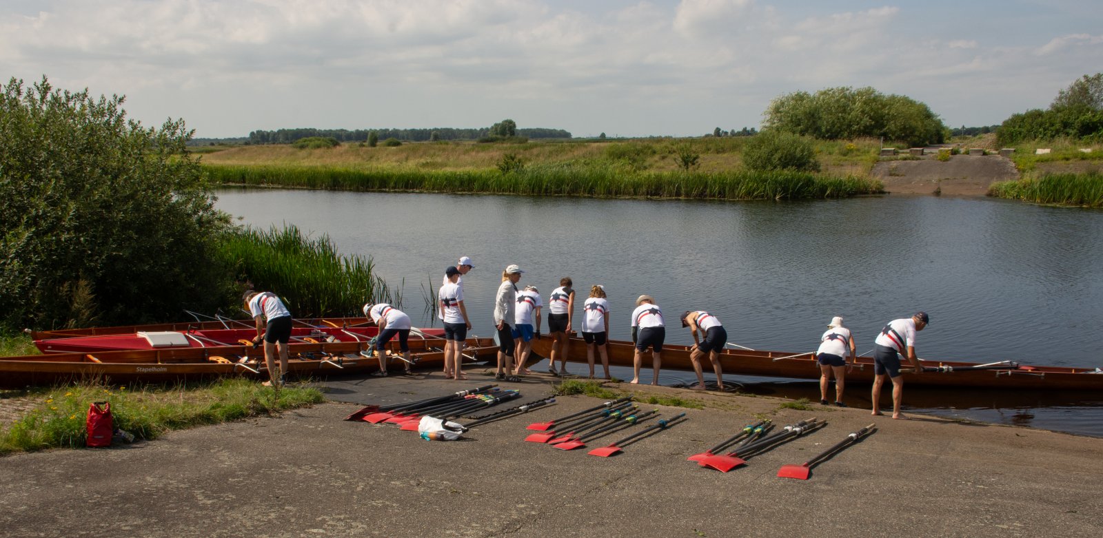 Wir sind zu Gast bei der Friedrichstädter Rudergesellschaft (FRG). Im Vorfeld gibt Claus die verfügbaren Bootsplätze bekannt. Die Liste enthält zwei Riemenboote, darunter einen Zweier. Insbesondere Letzterer sorgt für schlaflose Nächte bei einigen Teilnehmern: „Ich bin doch noch nie Riemen gerudert!“