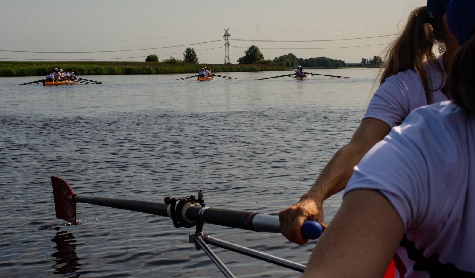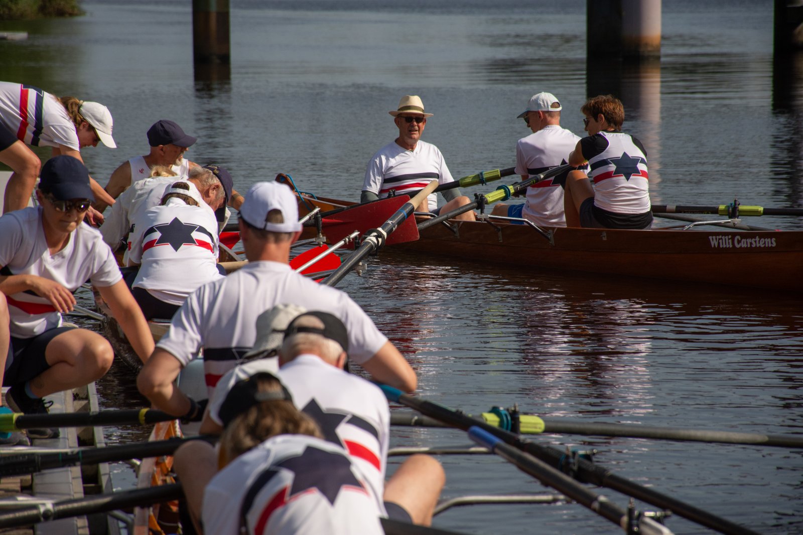 Entgegen der landläufige Erfahrungen sind auf dem Hinweg die Zweier teilweise klar vor den Vieren unterwegs. Die Riemenruderer müssen sich wohl erst einmal finden. Auf dem Rückweg soll die Welt dann wieder in Ordnung sein, die Vierer haben sich gefunden und ziehen davon.