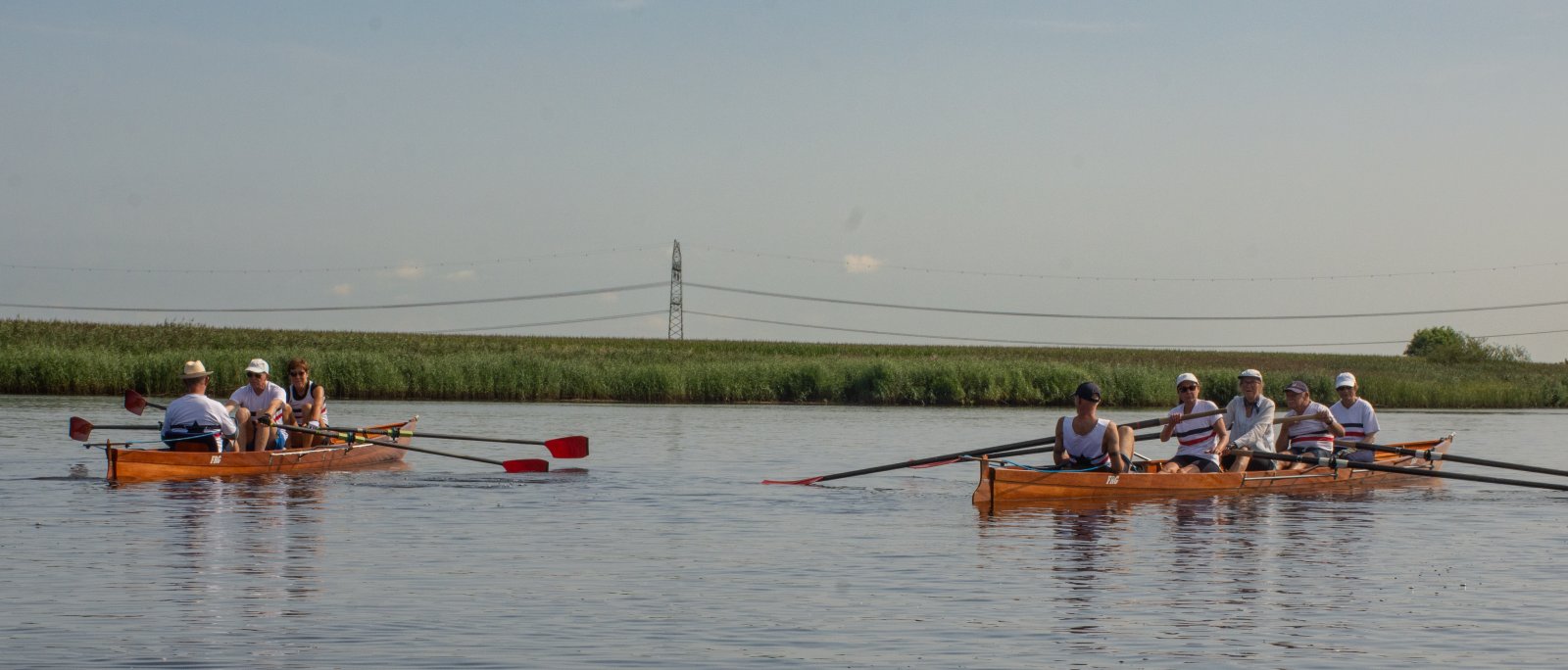 Alles halb so wild – der Zweier ist als Doppelzweier geriggert, bleibt also nur der Riemenvierer zu besetzen. Mit dem Versprechen auf einen späteren Tausch kommt dann schließlich eine Mannschaft zustande. Wir bekommen, bis auf eine Plastikbadewanne, schöne schnittige Sperrholzboote und die Ermahnung mit auf den Weg, diese sorgsam zu behandeln.