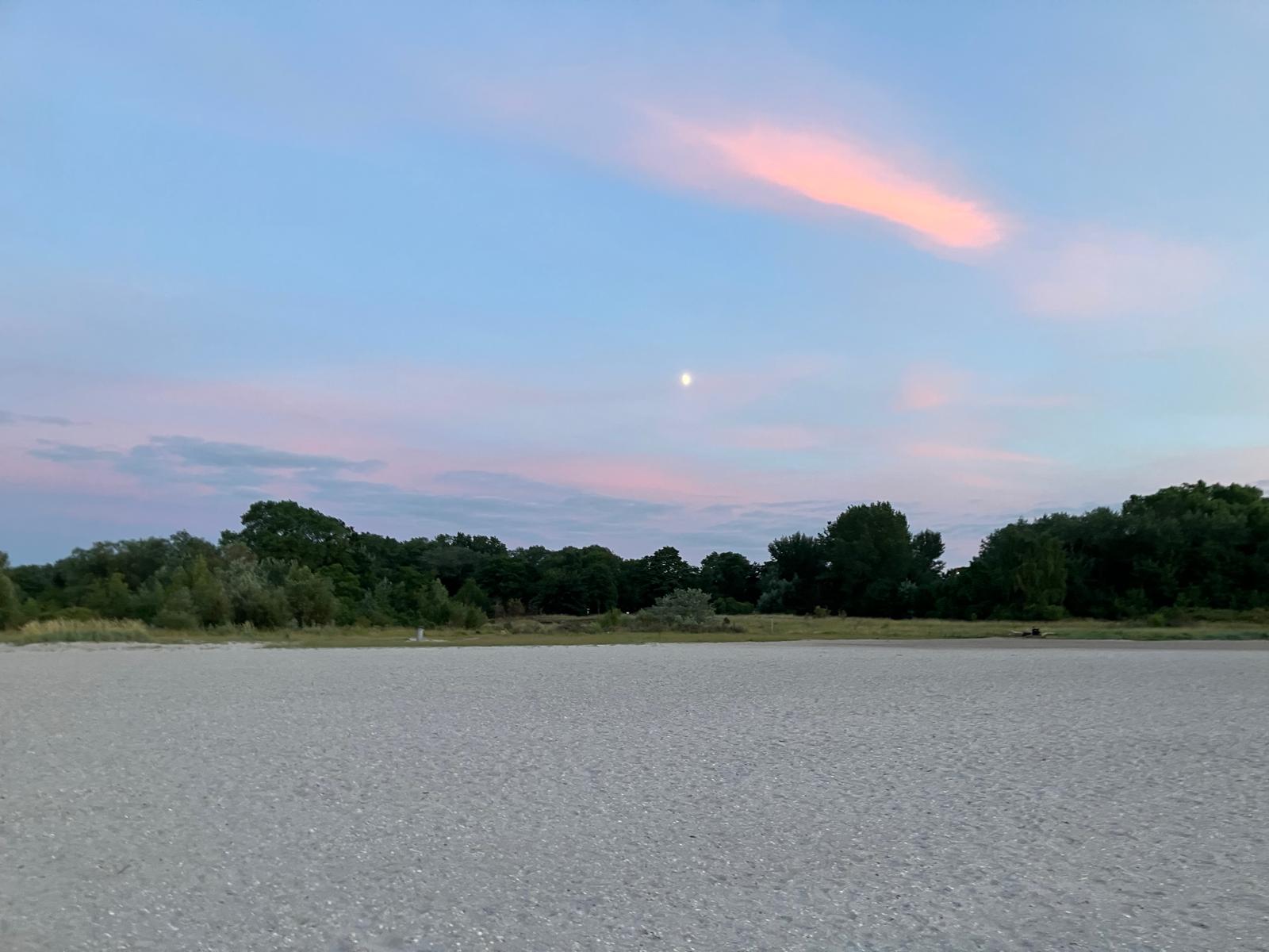 Zurück geht es dann wieder mit der Fähre. Einige möchten auf dem Priwall am Strand entlang zurückgehen, die meisten wählen aber wieder den kürzeren Weg durch die kunterbunte Ferienhaussiedlung – von einfach bis luxuriös ist hier dicht an dicht alles vertreten.