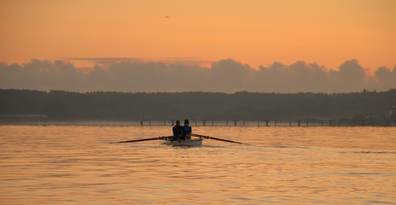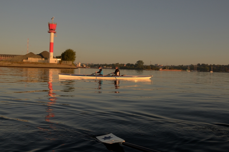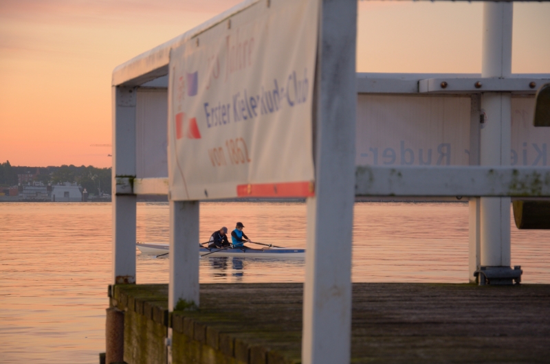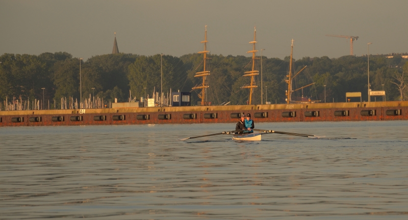 Die Menschen streben unter die Dusche, so auch wir. Doch anders, als die meisten Mitbürger, kommen wir nicht aus dem Bett, sondern bereits aus dem Boot. Und wir haben erlebt, wovon andere – wenn überhaupt – nur geträumt haben: Noch einmal eine schöne Ausfahrt über die noch unberührte Förde, hinein in die aufgehende Morgensonne.