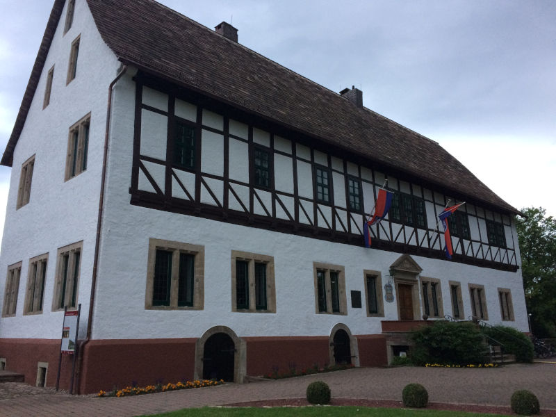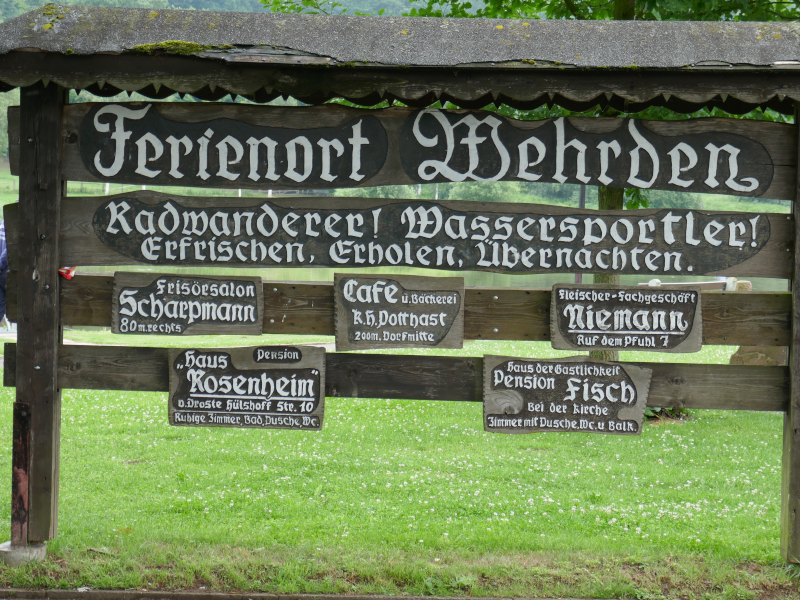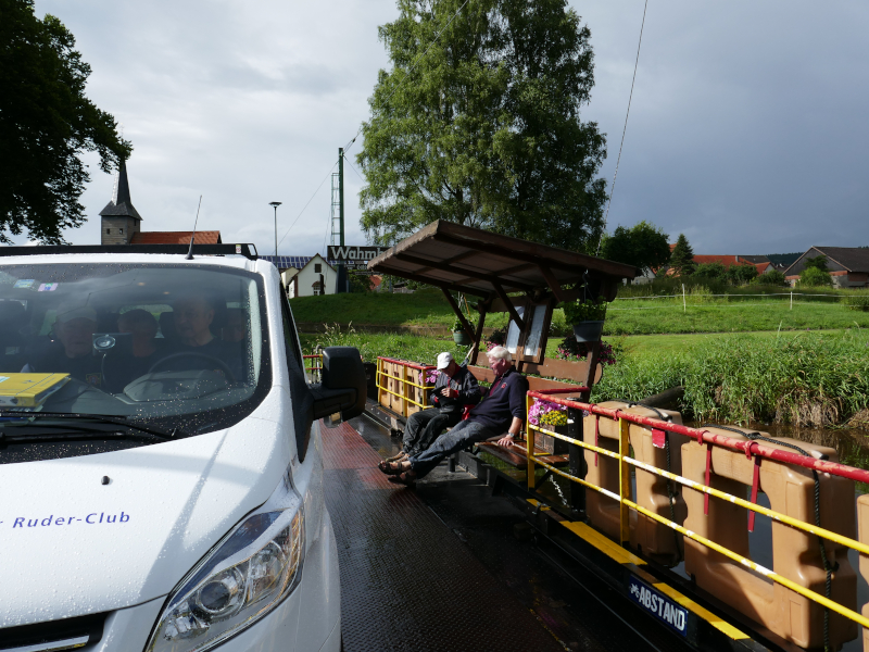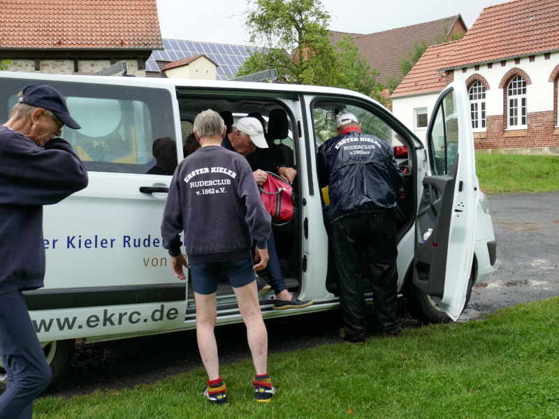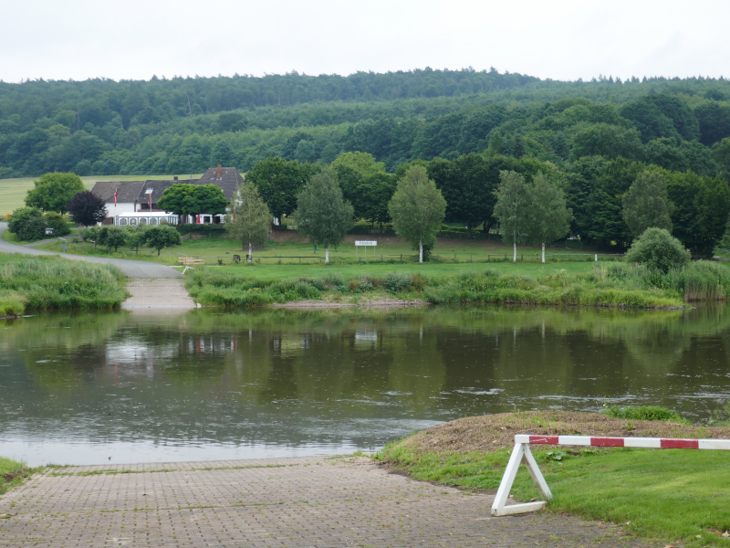 Nach glatter Autofahrt legten wir unser Boot im Ruderclub Hannoversch Münden ab und fuhren in unser Quartier in der Münchhausenstadt Bodenwerder. Das heißt, so ganz einfach war das nicht. Bedingt durch unzählige, überflüssige Umleitungen durchfuhren wir mehrere Balkanländer: Hessen, NRW, Niedersachsen und wie sie alle heißen. Unser Hotel aber entschädigte für die Strapazen der langen Fahrt, es war gemütlich, freundlich und es gab leckere Speisen. Auch die Verständigung mit den Eingeborenen, die überwiegend in schmucken Fachwerkhäusern leben, klappte problemlos. Lediglich das Navigerät wiederholte immer: „Bitte wenden Sie jetzt.“ „Bitte wenden“. „Wenn möglich jetzt wenden“ usw.