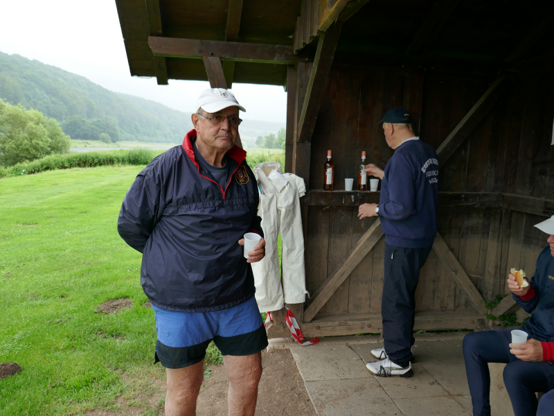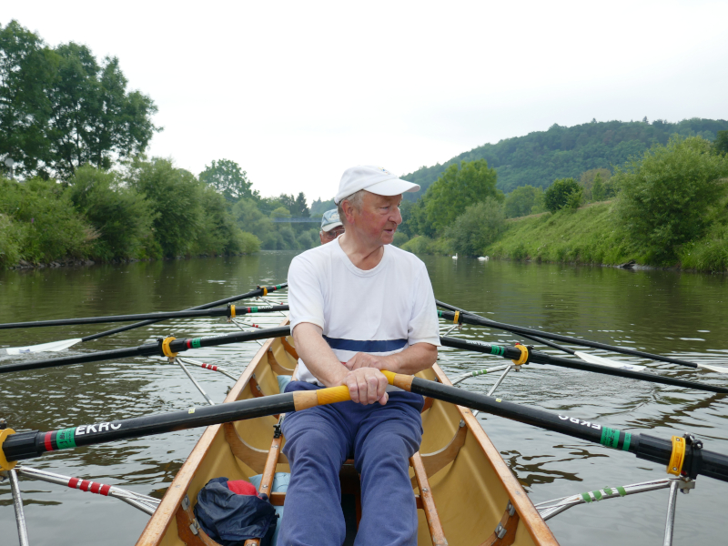 Uwe (86) ruderte (im Geiste) täglich noch mal 10 km stromauf, um die Jahres – Kilometer – Leistung hinzukriegen.