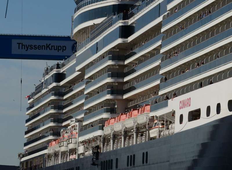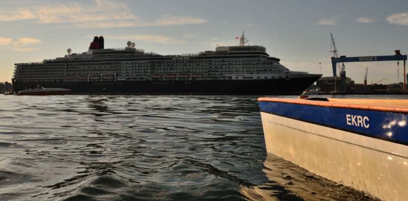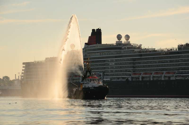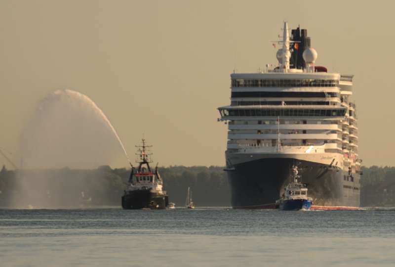 Ein herrlicher Sonnenaufgang über der Förde, windstill, klarer Himmel und glattes Wasser – eben Kaiserwetter. Doch nicht der Kaiser kommt zu Besuch (welcher sollte es denn auch sein – Kaiser Franz oder der von China?), sondern die Königin, genauer die »Queen Elizabeth« – nicht die aus Fleisch und Blut, sondern – noch genauer – ihr stählerner Namensvetter.