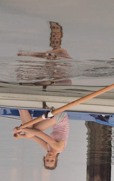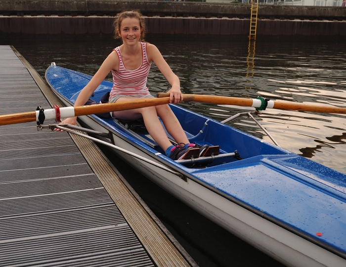 Jeder zieht seine Bahnen, ich fische noch eine echte Flaschenpost aus dem Wasser, Sabine bringt eine Schottland-Flagge mit an Land und jeder die Erinnerung an eine wunderbare Rudertour. Und für Frederike, das erste Mal in einem Ruderboot ein Einstieg, wie er nicht besser hätte sein können.