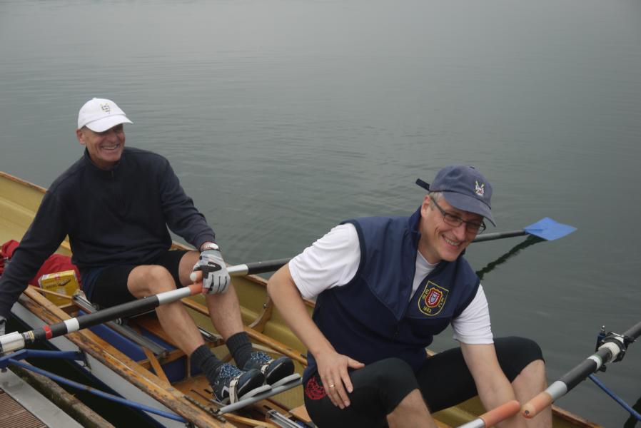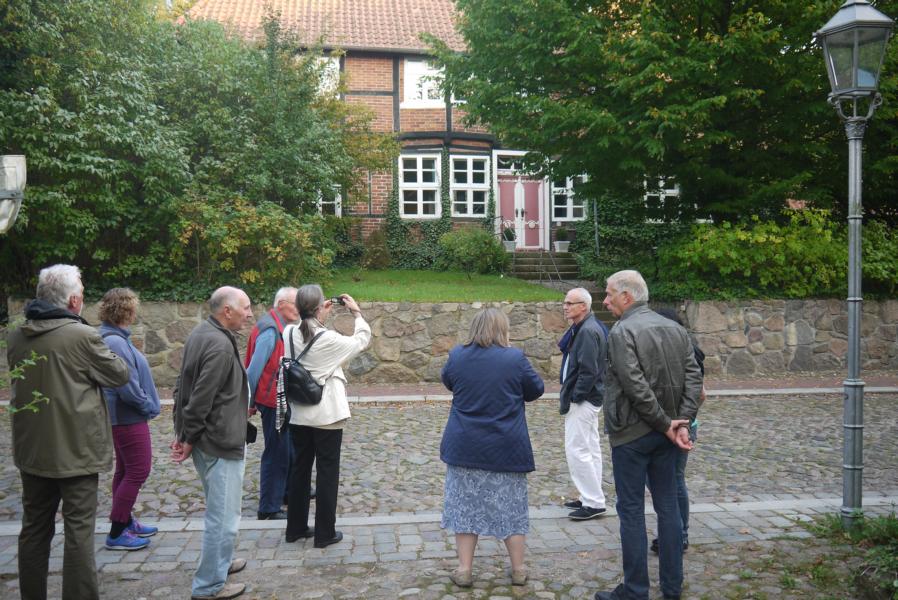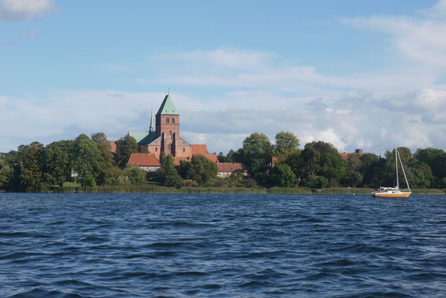 zwei Leihboote geordert. Mittags waren die Betten in der 2012 neu gebauten Jugendherberge bereits bezogen und alle staunten nicht schlecht über die schöne Lage direkt am See. Satt und zufrieden, denn vor der sportlichen Betätigung gab es erst mal Mittagessen, starteten wir gegen 14:00 Uhr vom Ruderclub aus entlang der markierten Regattastrecke zum Ende des Küchensees. Auch wenn uns die Torte im Farchauer Mühlencafe sehr empfohlen wurde, so verzichteten wir doch darauf, jetzt schon wieder anzulegen. Es ging also wieder zurück und um die Inselstadt herum zunächst in den Kleinen Küchensee und weiter durch eine enge Durchfahrt in den Domsee, immer im Blick der auf einem Hügel thronende Ratzeburger Dom! Die Weiterfahrt auf den Ratzeburger See wurde nicht zu lange ausgedehnt, denn erstens stand der ja noch in voller Länge auf dem Programm für den Folgetag, zweitens erwartete uns ein kundige Stadtführerin zu einem interessanten Stadtrundgang durch die Altstadt und zu den interessanten Orten für den Rudersport: Zunächst der Gold-Deutschlandachter von Mexiko ’68 in der Kundenhalle der Sparkasse (hier erklärte uns Pau die Besonderheit der italienischen Riggerung) und dann das Bootshaus vor der Sporthalle des alten Gymnasiums, wo Karl Adam als Physik- und Sportlehrer unterrichtete und später mit seinen bahnbrechenden theoretischen und praktischen Untersuchungen Ratzeburg zum internationalen „Mekka des Rudersports“ machte.