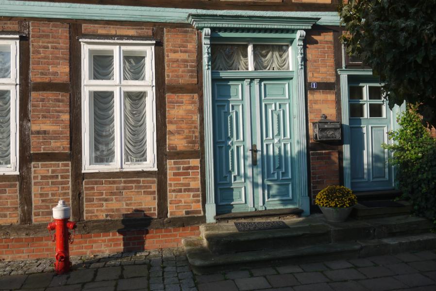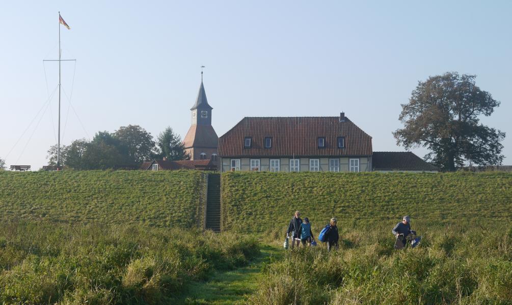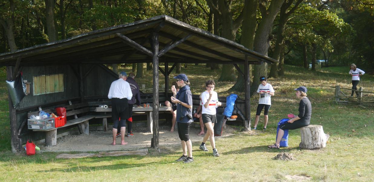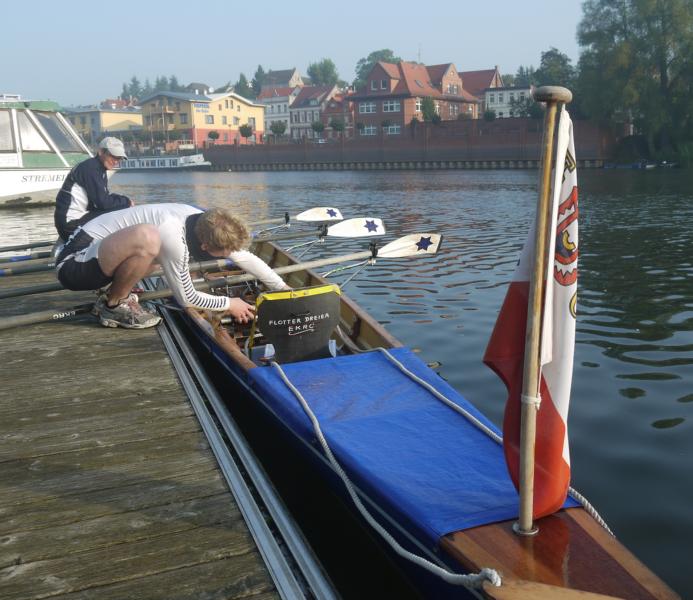 Von hier aus ging es weiter nach Schnackenburg, 15m ü. NN, dem bis zur Wiedervereinigung letzten Außenposten Niedersachsens vor der DDR. Davon zeugt noch ein für eine 600 Einwohner zählende Gemeinde relativ großer Hafen, hier war die Kontrollstelle für den Transit- und Wechselverkehr der Binnenschifffahrt auf der Elbe. Die Elbtalaue rund um Schnackenburg ist ein Naturschutz- und Erholungsgebiet mit seltenen Pflanzen und Vögeln, ein 14m hoher Holzturm ermöglichte hier einen guten Überblick – für die, die Freizeit hatten und nicht mit Versetzen der Fahrzeuge beschäftigt waren! Leider bestand nämlich noch ein Lichtproblem am Bus, das aber schließlich durch einen fachkundigen Ruderkameraden des Eckernförder RCs, welcher ebenfalls eine Wanderfahrt auf der Elbe unternahm, gelöst werden konnte. Irrungen durch kleine Straßen und Navifehlleitungen am ersten Abend führten dazu, dass wir als Gruppe nicht gemeinsam Essen konnten, insbesondere Armin hatte aufgrund der Begrenztheit seines Motorradtanks (geringe Tankstellendichte), kalten Händen (Fahren nach Sonnenuntergang) und schließlich durch „Unterhopfung“ sehr zu leiden. Obwohl räumlich sehr überschaubar bietet Schnackenburg eine gute Übernachtungsinfrastruktur, da die Elbe nicht nur für Ruderer sondern auch für Radfahrer (Elberadweg) sehr attraktiv ist.