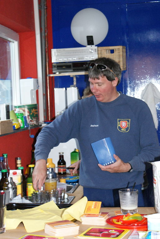 Zunächst jedoch noch ein Pressebild mit den ersten Cocktails auf der EKRC-Brücke und dem Aktionsbanner. Erfreulich ist, dass zu diesem Teil noch weitere Mitglieder samt Besucher gekommen sind. Wir probierten den erfrischenden »Blauen Kapitän«, den süßen »Sweet Kiss«, den cremigen »Schneeweißchen«, den fruchtigen »Paradise Hunter« und den vitalen »Sunflower«. Einen eindeutigen Favoriten gab es nicht, eigentlich haben sie alle sehr gut geschmeckt und den Alkohol hat niemand vermisst. Mit dabei und eifrig geholfen hat auch unser Jugendwart Lasse Jannsen.