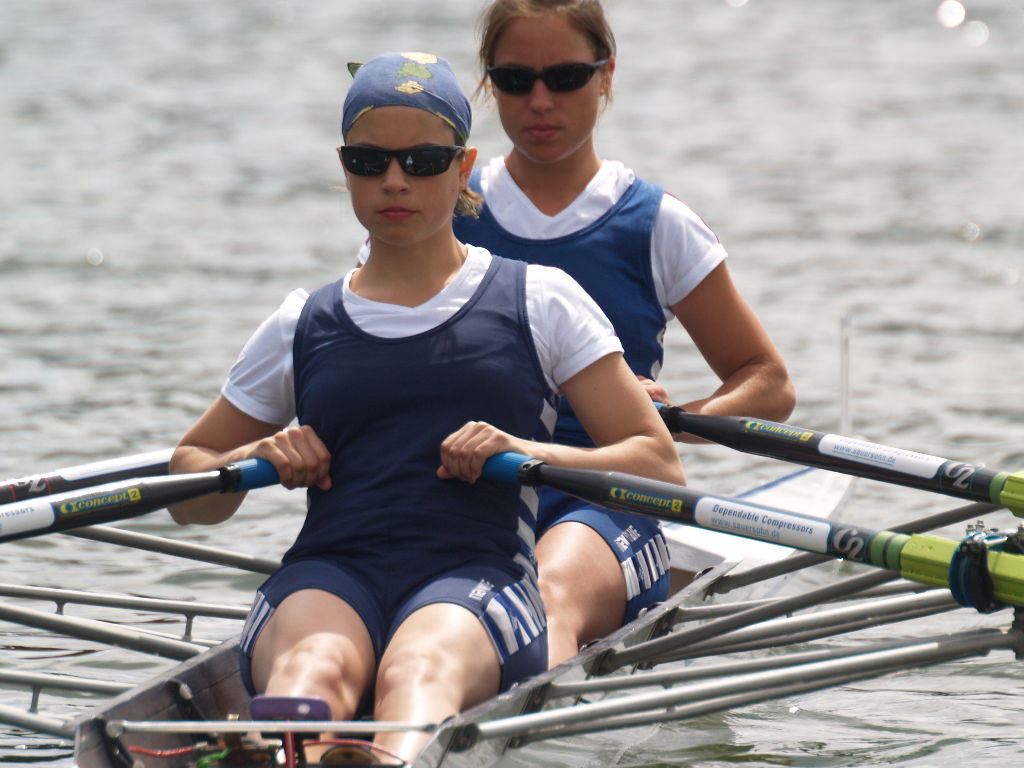 Im Leichtgewichts-Frauen-Doppelzweier startete Claudia mit ihrer Partnerin Anne Gingrich. Durch einen langen Startspurt der Kielerinnen konnte das Feld auch hier bereits vor der 500 Meter-Marke gespalten werden. Während das Boot aus Köln (Höhn/Gebauer) auch hier dominierte entwickelte sich ein Dreikampf um die Plätze Zwei bis Vier. Am Ende konnten Claudia und Anne den früh angezogenen Endspurt mit einer halben Sekunde für sich entscheiden und verweisen das Boot der Universität Hannover auf den Bronzeplatz. Ein toller Erfolg für die beiden Ruderinnen, denen ein klein wenig Wehmut anheftet: Die jeweiligen Sieger der Rennen wurden für die Studenteneuropameisterschaften in Polen Anfang September nominiert.